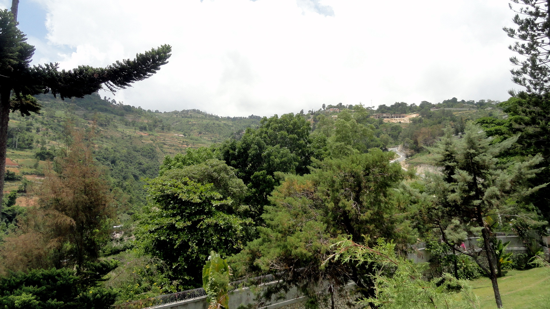 One thing many outsiders (especially in the US) know about Haiti is the popular refrain “mountains beyond mountains,” to describe the highly mountainous terrain most common here. Recently I’ve gotten out again a bit: up to Hinche in the Central Department here, driving through lovely green farming terrain along the way…and, indeed, getting a sense of the mountains which criss-cross this country, rank upon rank. These are mostly just shots taken during the drives, or in and around the hotel we stayed at in Hinche. There are also a few bits and pieces from here in Port-au-Prince and environs, just for fun.