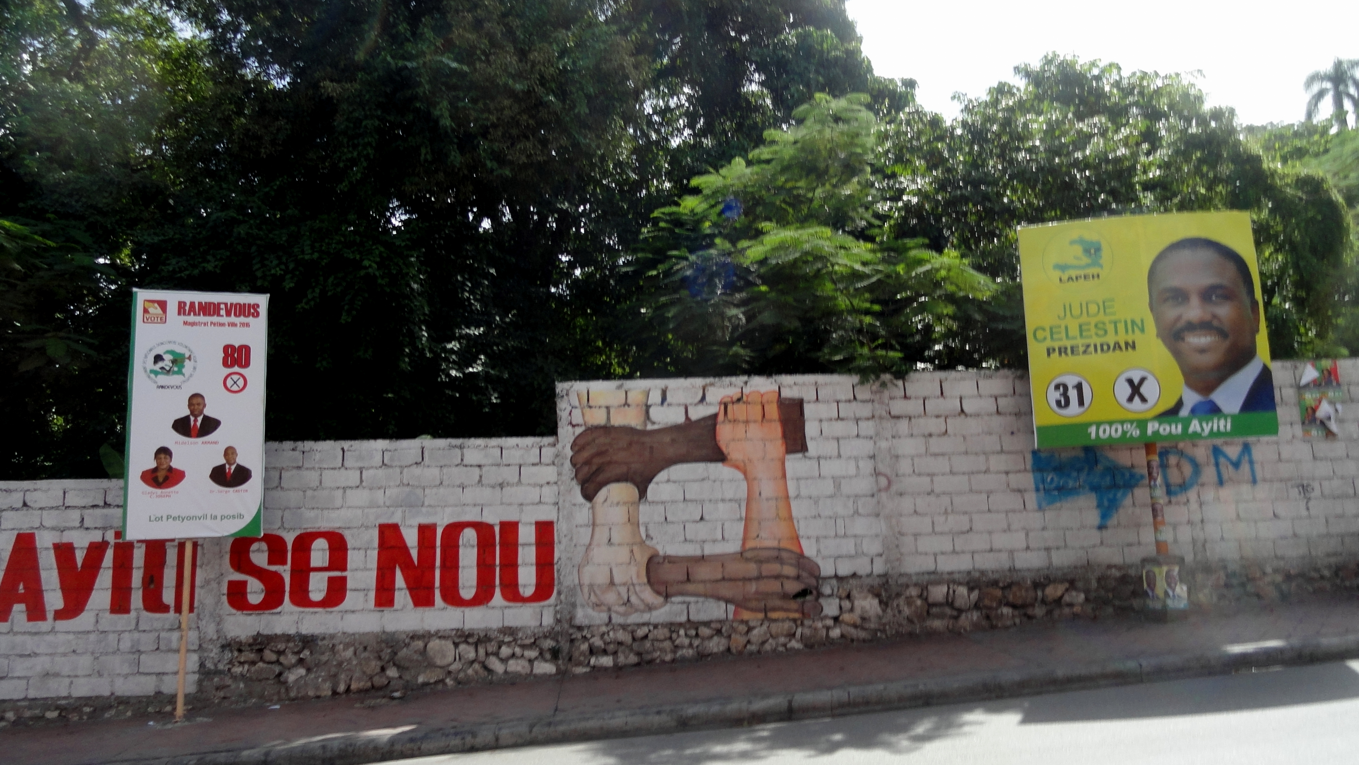 Americans of my generation remember Bertrand Aristide and his election as president in 1990. Many then lost sight of him, and got lost in the details of Haitian politics fairly soon after, but to recap, Aristide was ousted seven months after taking office (military coup), returned in 1994 to finish out his term; was succeeded by Rene Preval (presidents can’t serve two terms in a row, and can’t serve more than two total, under the post-Duvalier constitution); was re-elected in 2000 and held office from early 2001 until forced out of office by an organized and armed opposition movement in 2004; was then succeded after the 2005 election again by Preval, who was succeeded after the 2010 election by the current president, Martelly. The party Aristide founded, Lavalas, is being permitted to run candidates for the first time 2004 – and though the party has lost some of its shine since the idealistic days of the late 1980s and 1990-91, it seems to me that for many they still represent hope. For many others, it seems they call up fear of a return to violence and strife. I’m hoping for a reasonably peaceful weekend and an electoral result that most Haitians feel is fair enough. Either way, I have to admit I find the all the posters fun, seeing how politicians all over the world promise the same things, do the same things…a pothole on our street just got fixed last weekend! Just like NYC during election season, eh? Above all I join many friends and colleagues in hoping for a maximally non-violent weekend and subsequent counting period…