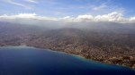 Trip two: the return leg from Miami to PaP, from the same vacation trip, in later August. I just love looking down at the islands, sandy bottoms and coral formations of the Bahamas. Then watching the shores of Haiti creep slowly closer and become landforms, towns and cities that I recognize and can place on a map.