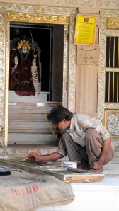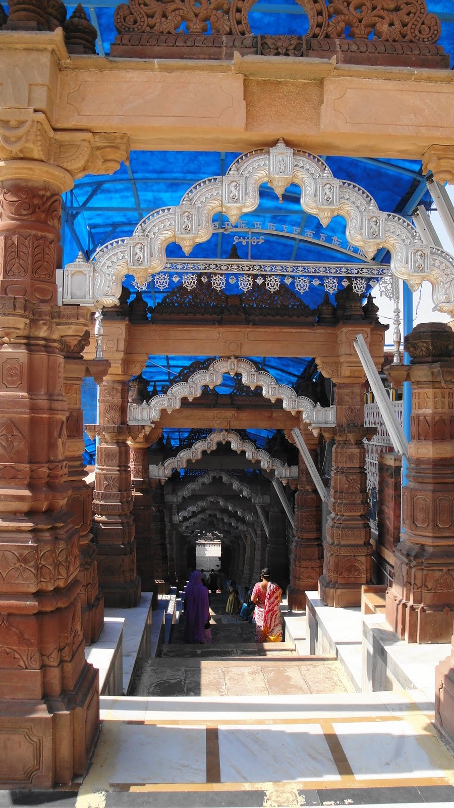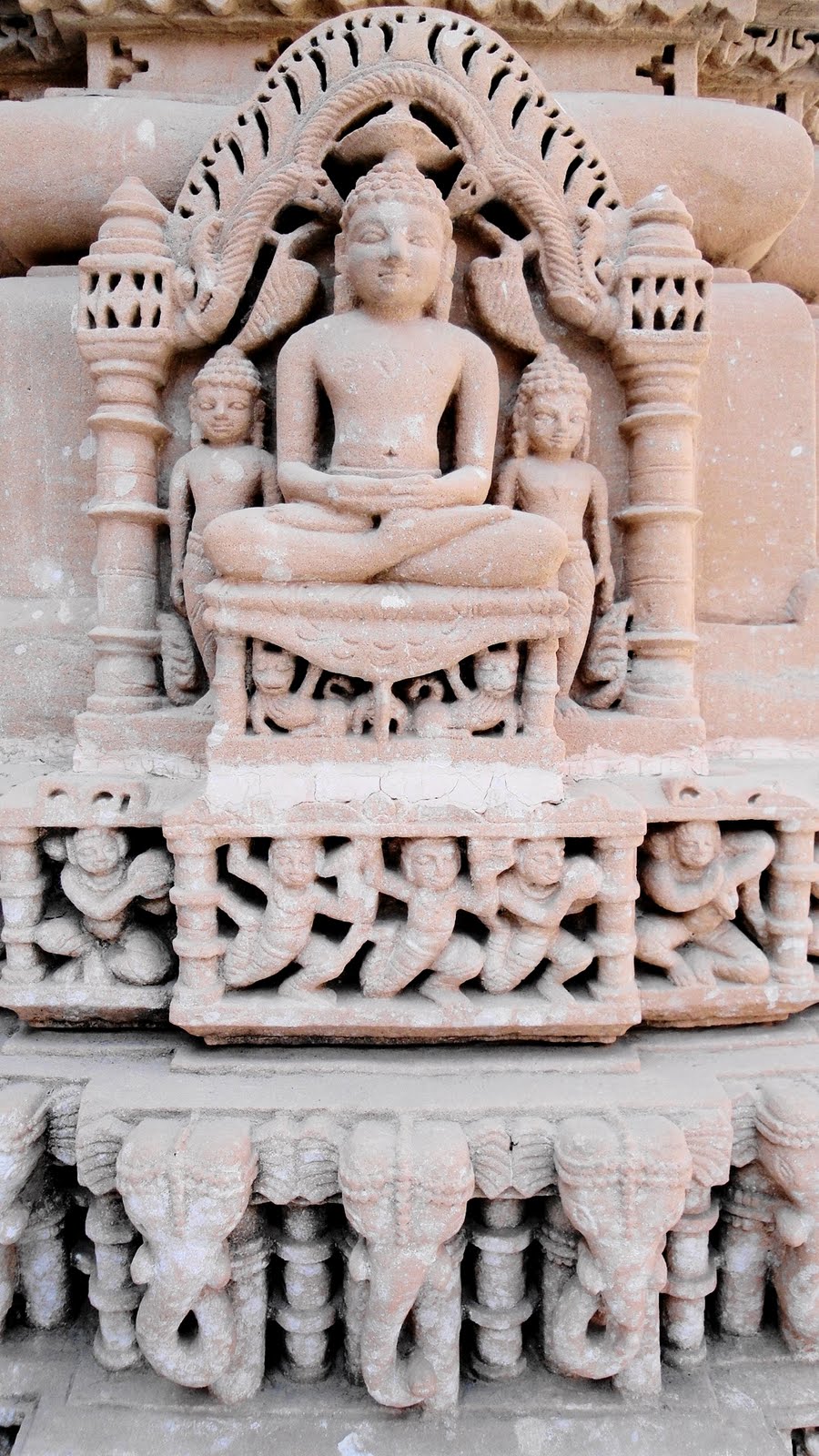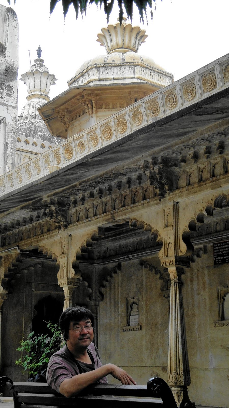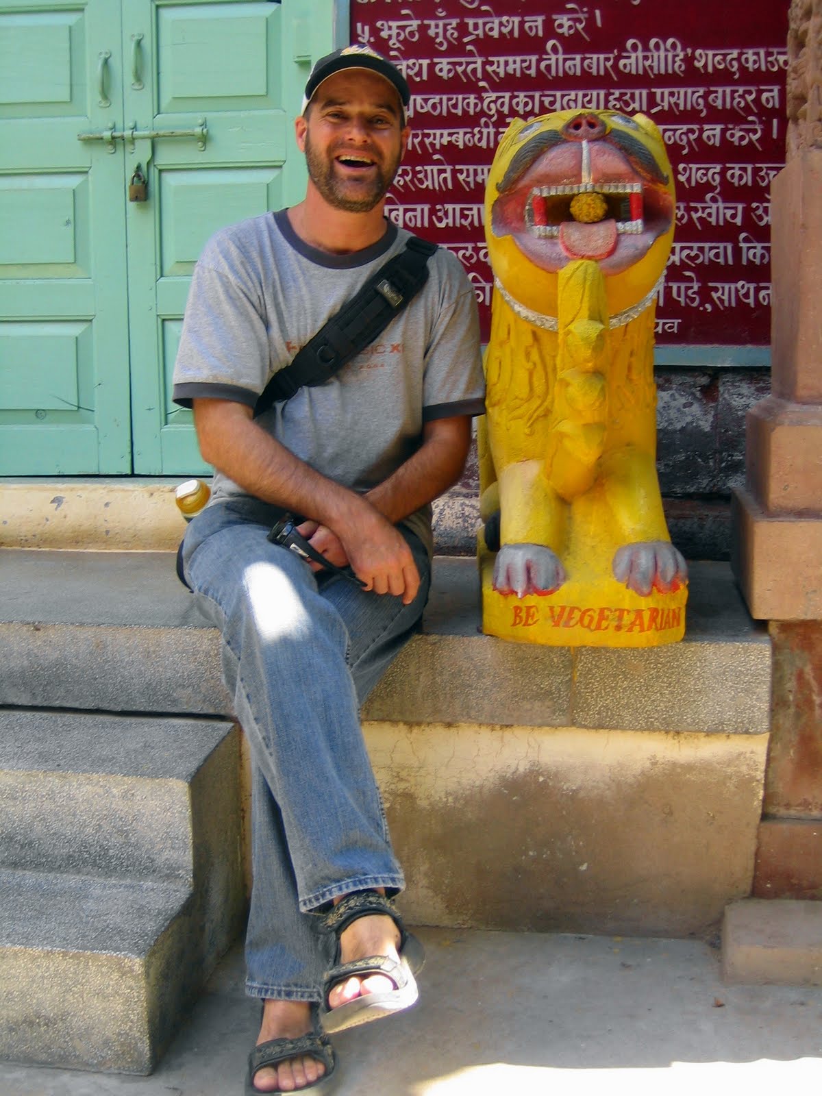 …above, Paul sitting by the ‘Be Vegetarian’ lion (?) at the Jain Temple. Jains, for those who don’t know, believe even more than Hindus in not harming any living being; Jain thalis contain no butter or milk products. They also believe the nature of reality was revealed over the milennia by 24 different prophets, culminating in the 24th who established the Jain religion. Jains were often a very important trading and business presence in the towns and cities of what are now Rajasthan and Gujarat.