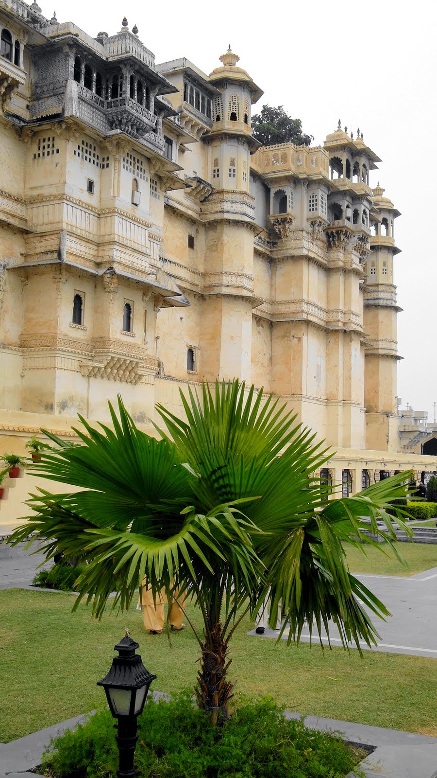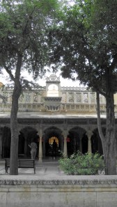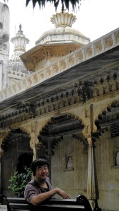 built about handful of palaces in what is now the absolutely sprawling City Palace compound. Feeling those half-dozen palaces weren’t quite enough, they built another two out in the middle of the manmade lake they’d created — the most famous being the white Lake Palace, now the exclusivest of exclusive hotels (Udai’s descendants now operate a couple dozen hotels out of various of their palaces, while living themselves in one or two of the others), which featured quite prominently in the rather enchantingly named James Bond film Octopussy.