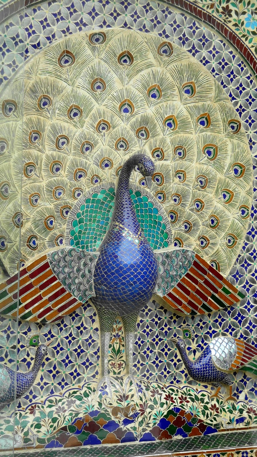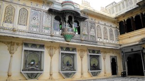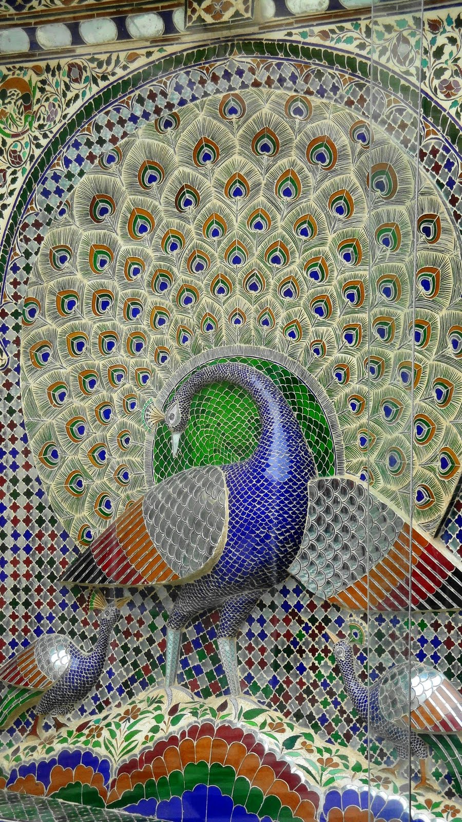 In any case, one or two of these palaces are now given over to the City Palace Museum, recounting the history of the Mewar Dynasty (Udai and his children). The artistic centerpiece is he Peacock Court, featuring three absolutely spectactular tile peacocks. Classic example of the beauty that can emerge from dreadully inequal social systems…I just hope the remarkable artists who created these got a reasonable day’s wage for doing so.