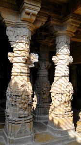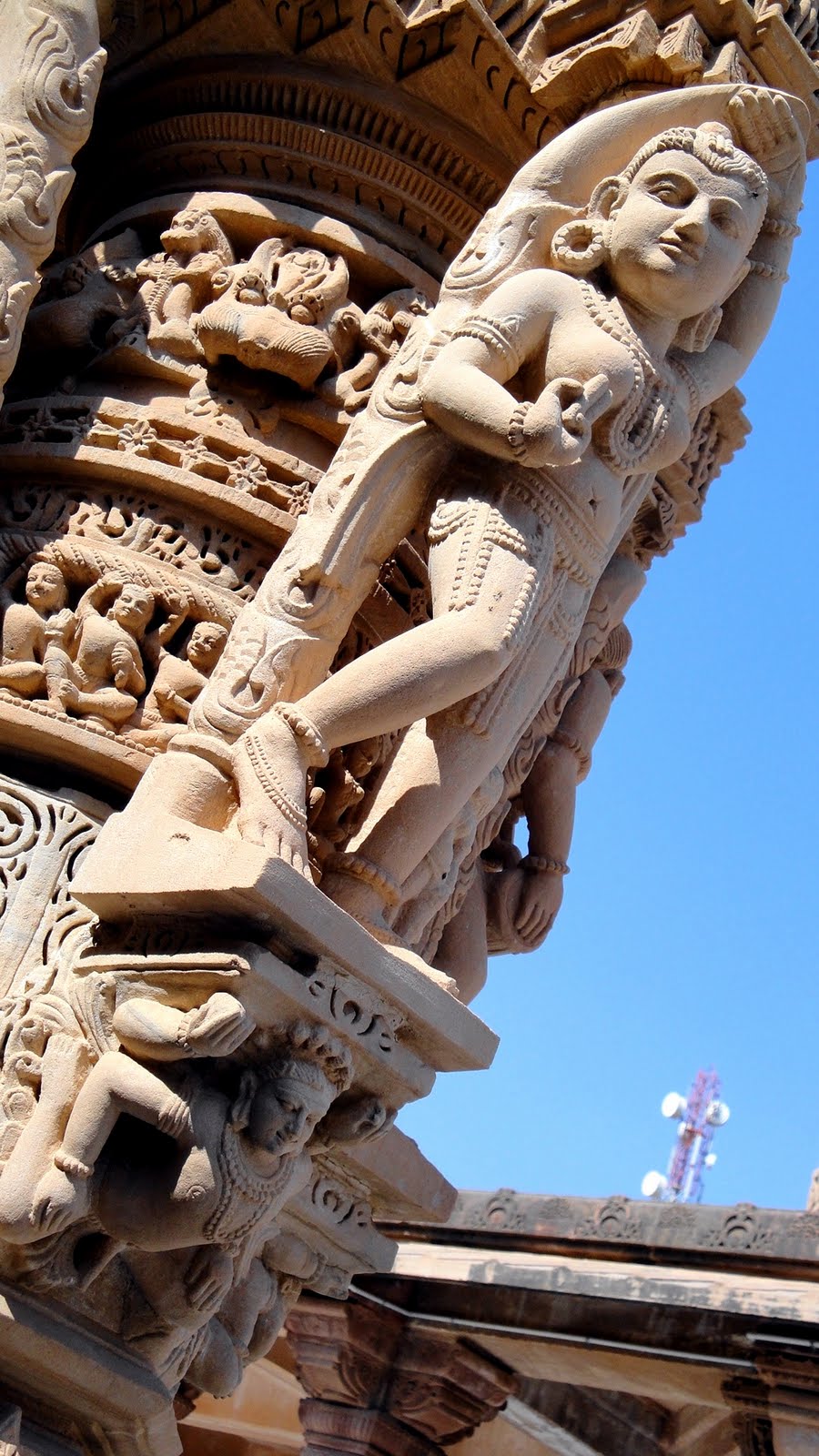 Osian is a small town halfway between Jodhpur & Jaisalmer. Sitting in the middle of the desert, somewhat off the faster but longer road that connects Jodhpur up to Jaisalmer, its tourist magnets are two lovely temples built during Osian’s years as an important trading center, roughly 12th to 18th century CE. Since we were three traveling together, we had the luxury of our own car & driver, so we were able to stop at Osian on our way up to Jaisalmer…no long story to this one as there was with the temples at Ranakpur, north of Udaipur, which our driver had not understood were on the program until it was a wee bit too late to be practical — hence the Kumbalgarh-and-drive-through-lovely-countryside consolation prize.