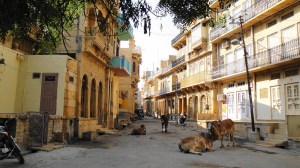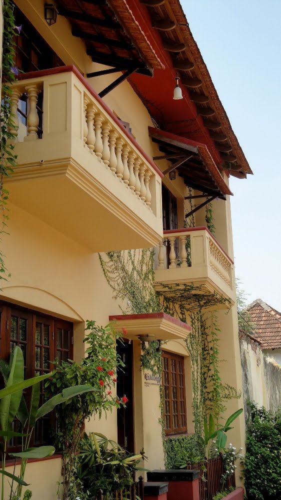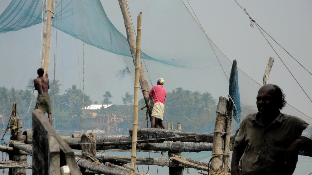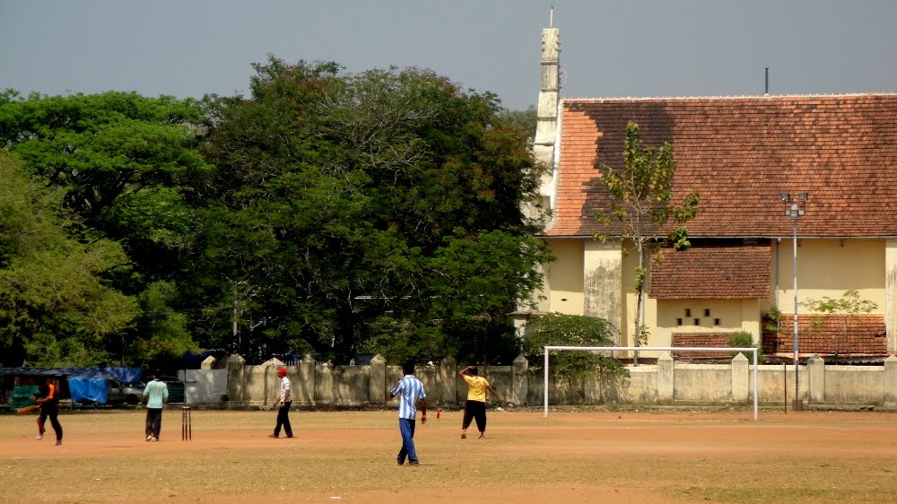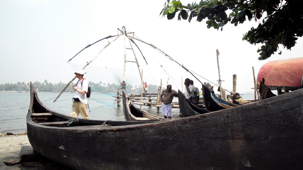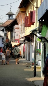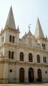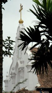 Fort Kochi, aka Cochin, is home to an active harbor and fishing water front, the oldest church in India (I think – see side view below with kids playing cricket) and no dearth of other christian symbols & buildings, the oldest synagogue in India and the small remnants of a Jewish community whose ancestors came here after the destruction of the (2nd?) temple in Jerusalem a few thousand years ago, and a lot of cool & atmospheric houses, streets and waterfronts.