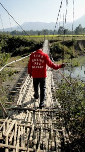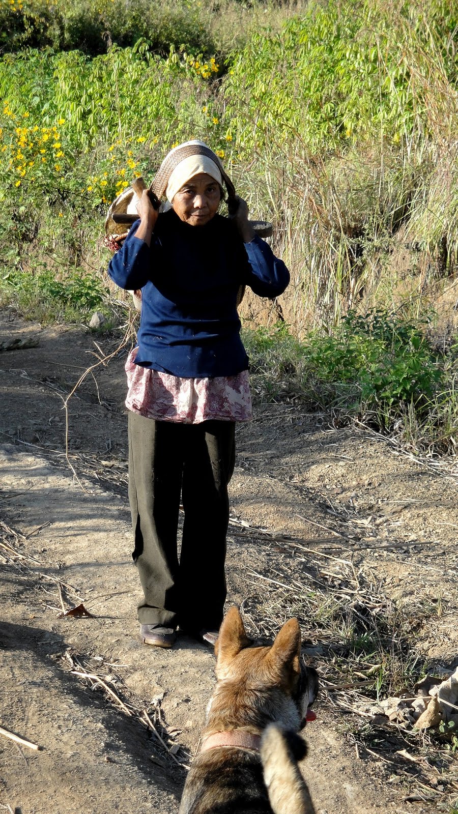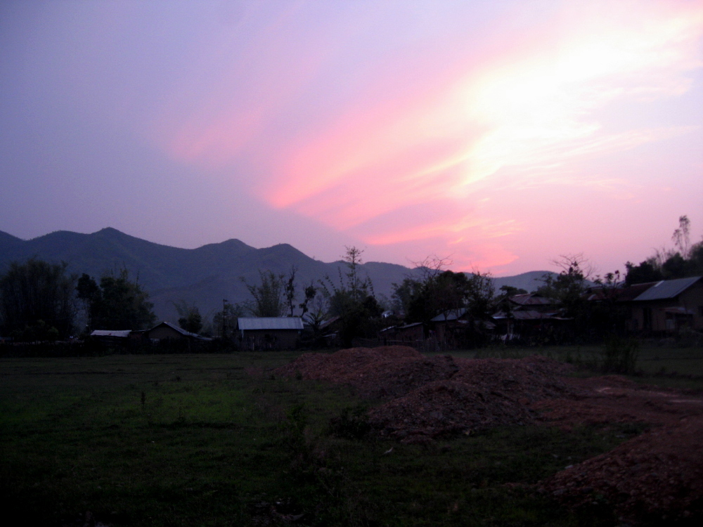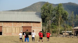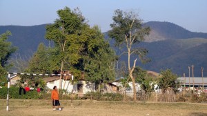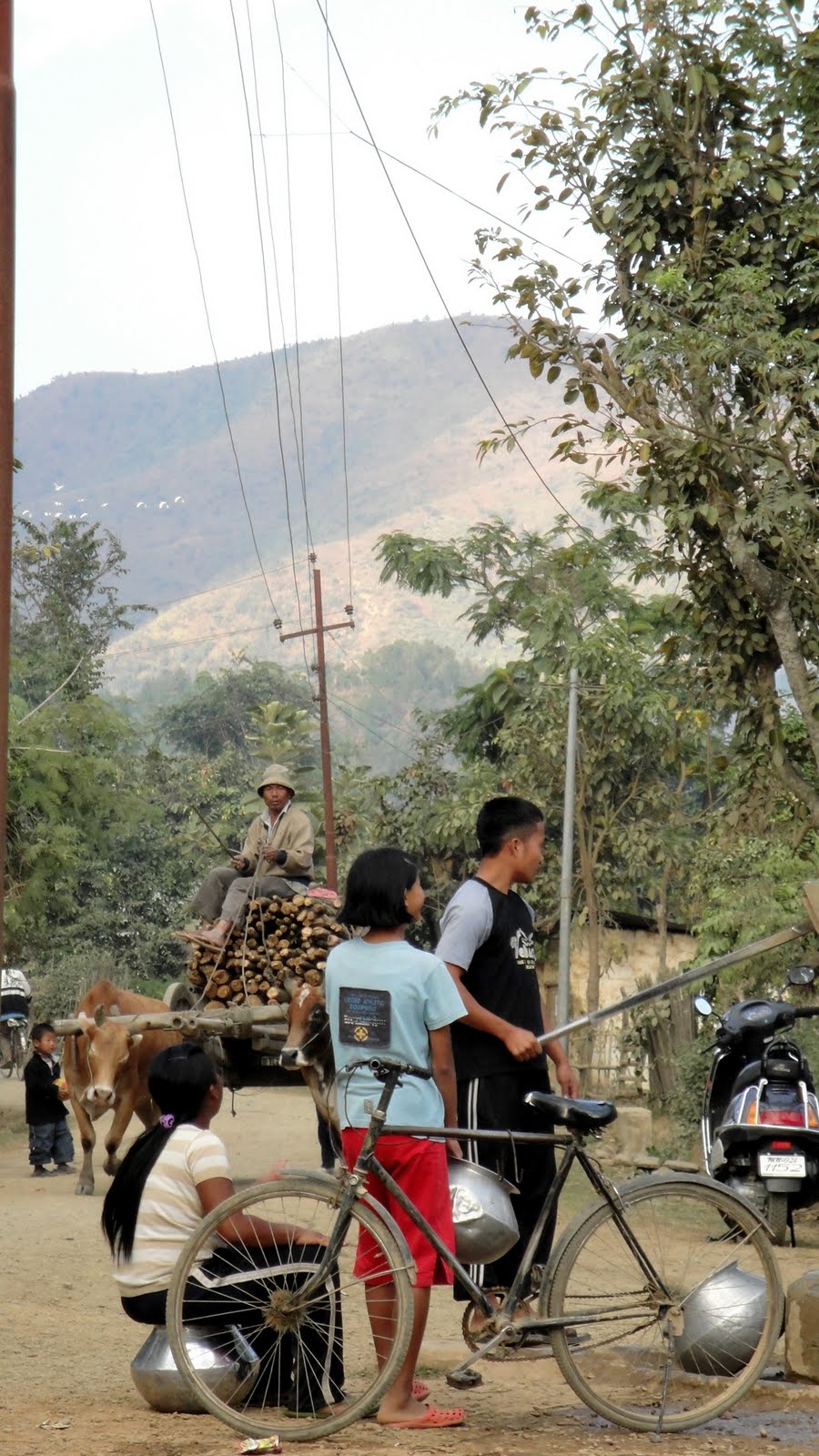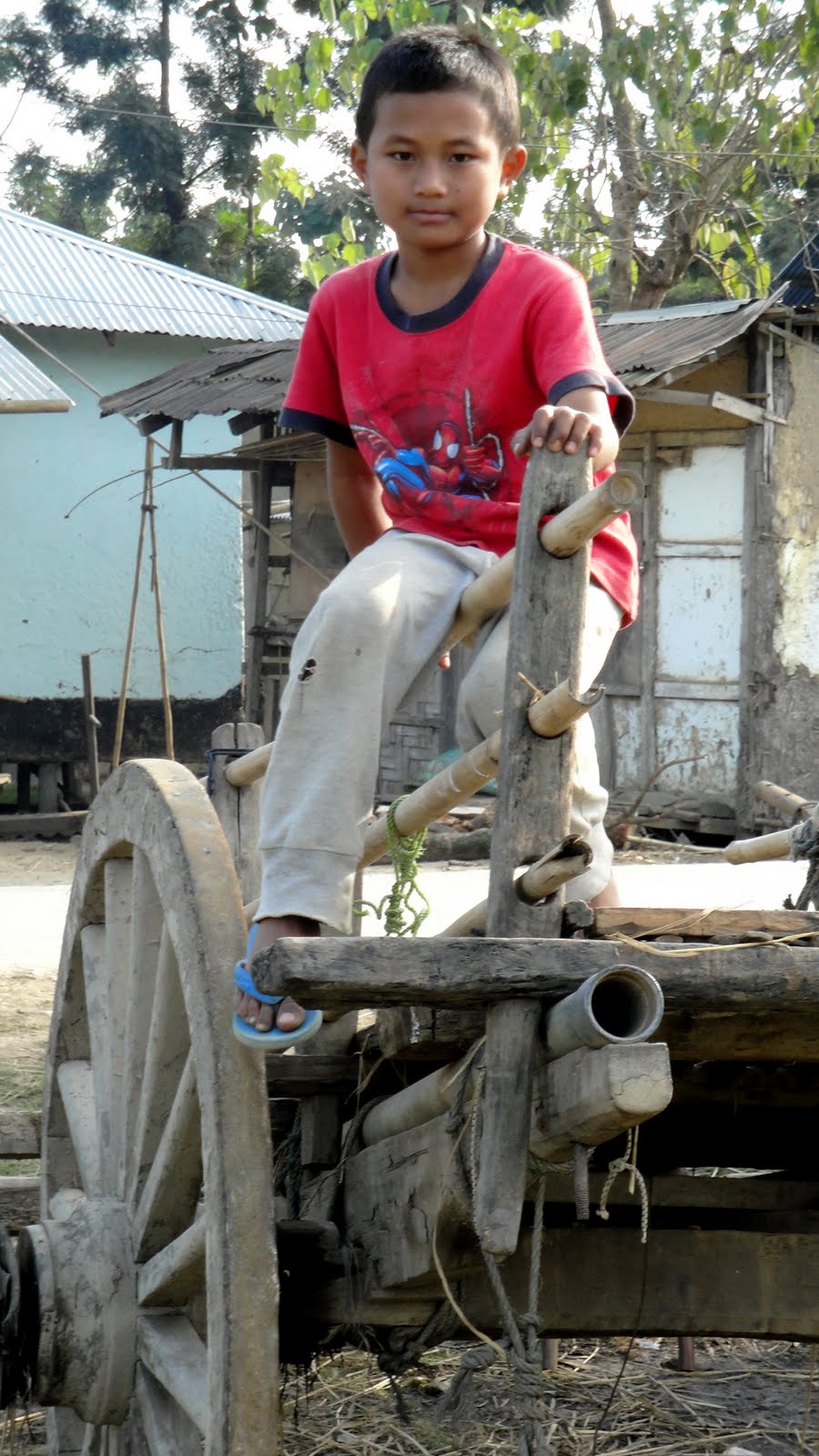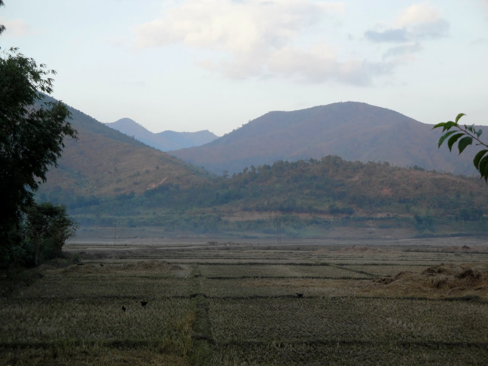 It’s dry season here in Lamka and they’re prepping some road beds for paving, or at least building up the gravel and dirt that cover some of the roads. Out for a run with Fiona I saw again one of my favorite neighborhood sights: a few 10-something kids dragging an obviously hand-made wooden cart (handmade wooden wheels and all — didn’t get a close enough look to see if there were metal axels but I suspect not) bumping by with jerry-cans of water sloshing around inside. (Interpretation: these folks are poor enough that they lug their own water, and poor enough that it’s better to build their own wheelbarrow rather than buy one commercially. Welcome to Lamka.) A couple days earlier, on another of our beloved weekend hill walks, I’d landed dramatically on my bum after jumping a ditch by a field where some kids were playing cricket. (Rare, that: first time I’ve seen cricket here, where the fields are about 99% given over to soccer usually; another indicator we’re culturally in southeast, more than south, Asia.) As though choreographed, the second I took my spill, every one of the kids burst out in uproarious laughter that was light-hearted and funny, not at all teasing or mean. They just found the sight of this bearded weird foreigner going down on his butt extremely amusing. The looks we get on our hikes tell us clearly enough that simply the idea of walking for fun is odd enough as it is — if one has the luxury of free time, one ought to use it to rest from one’s labors, not to take on new ones! Or at least to engage in some normal entertainment such as soccer! What’s with all this walking-through-the-hills business???