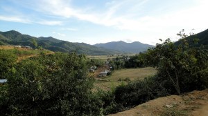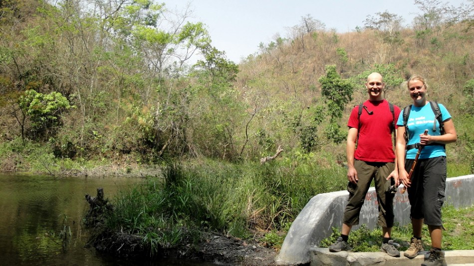 On a lighter note: below are some shots from the longest weekend hike that Par, Fiona and I did during my time: up and over a few large hills and around the trail you can see below. Also a shot of Par and me on the walk. This was, obviously, late in the dry season. Quite different from the verdant look during the rains, huh? BTW, in case clarification is necessary: we weird foreigners used these trails for recreation; for locals they’re how to get your produce to market and do your shopping trips.