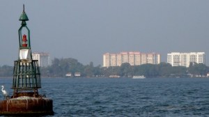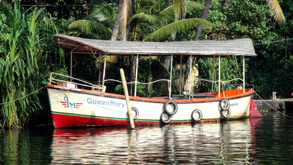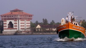 Above: street scene in Kottayam, northeasternmost corner of the backwaters and site of Arundhati Roy’s celebrated book, God of Small Things. Below: it’s not Long Beach…it’s Queen Mary of the Backwaters.Arriving in Kochi