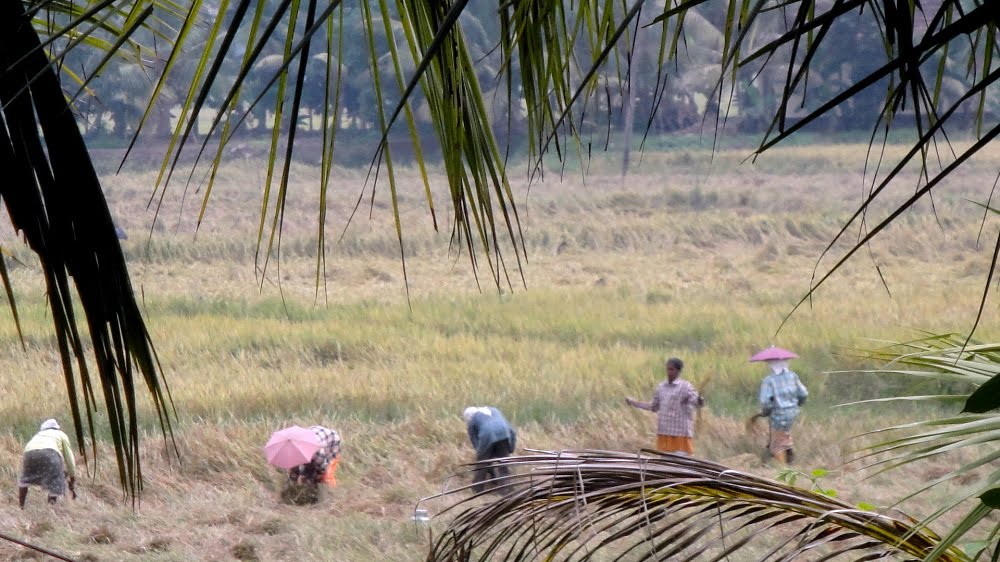 Back in the office last week I paused to look over the old, fading color photos taped to the gunmetal-grey doors of the cluttered IT equipment cabinet. In one photo four white MSF Mahindra 4×4’s are parked elegantly by the side of a flat, paved, unpotholed, divided, four-lane highway complete with paved shoulder. Asking where the photos was – since it couldn’t be Manipur, which has no divided roads or highways aside from a few blocks in Imphal – I learned it was when our four new vehicles drove overland from mainland India to reach our project a few years back. So all these rhapsodies about the sun, the palm trees, and the apparent – to my mind – similarities to Sri Lanka (meaning: this place looks and feels more like that than anything else I’ve seen before; certainly more than the brush-covered tribal hills of Manipur) happen at the same time as my mind tries to calculate how much wealthier and more developed Kerala must be than Manipur. Howard & Gene rapidly tired of my rhapsodizing about the flat, smooth and wide roads of Rajasthan, last November. But here, not only are roads smooth and flat; they’re divided four lane highways! And most drivers stick to the two lanes per side, unlike Delhi where they’d squeeze a good four or five cars into the same width…plus a bus for good measure…