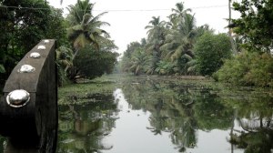 So here I am at dawn on the backwaters of Kerala, watching herons and egrets do their breakfast dives and stabs into the water. A few of the more intriguing songbirds are still calling to each other, but mostly the sounds are crows, a loudspeaker reaching across the water from a nearby temple, and the occasional horn trilling from an unseen road. (And many Indian horns do trill, multi-note melodies that go into an echo-fade thing for a few seconds – so much more Indian in ethos than the stolid northern-European, Anglo-American, single-note horns that just thrust themselves into the audioscape and then as suddenly retire. I’m called momentary to a reverie of LA’s highways packed with colorfully-decorated Indian-style vehicles, all blaring their horns in a cacaphony of receding trills…certainly more interesting than the standard-issue LA rush-hour traffic jam.) There’s the occasional electric-blue flash of wings skimming the water’s surface, which I assume is the kingfisher, so fleeting and elusive that I’ve never captured it on camera. So startlingly, dazzlingly blue in this green world that I wonder if I’ve imagined it, until it happens again. I lie on my bench seat, head turned so I can gaze out on the watery highway extending in front of the boat and listen to clothes thwack on rocks, watch white egrets & black cormorants & the occasional electric-blue kingfisher feast on the fish smorgasbord beneath me.