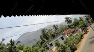 The four-hour journey from Varkala south to Kanyakumari takes me through Thiruvanatapuram, Kerala’s second city & seat of government, and past the tourist haven of Kovalam to its south, onward to India’s tip where three oceans meet: Arabian Sea, Indian Ocean & Bay of Bengal; waters especially holy to Hindu devotees of the virgin goddess Kumari. I’ve been in flatlands since I landed at Kochi a week earlier – much of the backwaters is below sea level, prone to flooding when the monsoon is heavy and vibrantly, endlessly green even now, several months into the dry season. As tthe rain follows the continent’s curve eastward to join the subcontinent’s east coast curving down to the narrow tip, I notice that our inward, eastward curve brings the southern reaches of the Ghats, mountains whose name I’ve read but never before seen, within range of my curious and questing eye. Strangely, after the verdant aqueous landscapes I’ve been surrounded by for weeks, my firs view of these southern outposts of the Ghats calls me back to the desert of southern New Mexico and the Organ Mountains between Las Cruces and Alamogordo, so named because their sculpted vertical rock faces are reminiscent of an organ’s pipes.