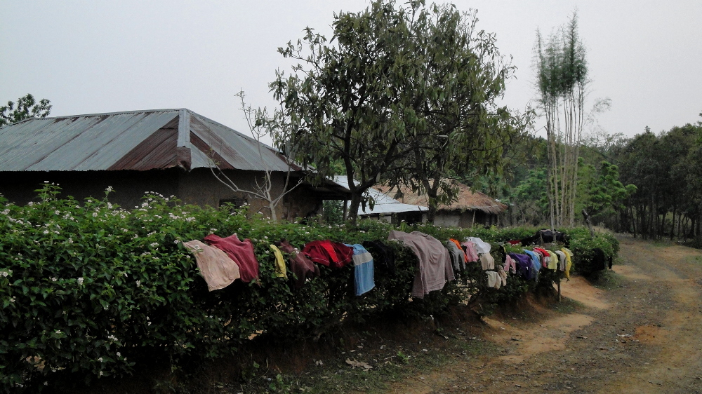 Blankets, hung out to air and dry on a footbridge at the edge of CCpur town.