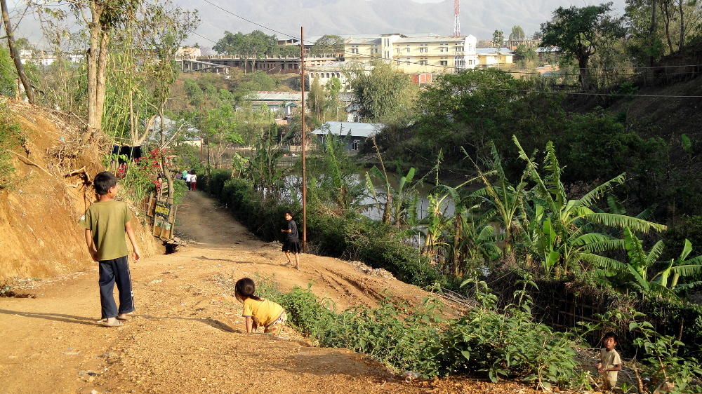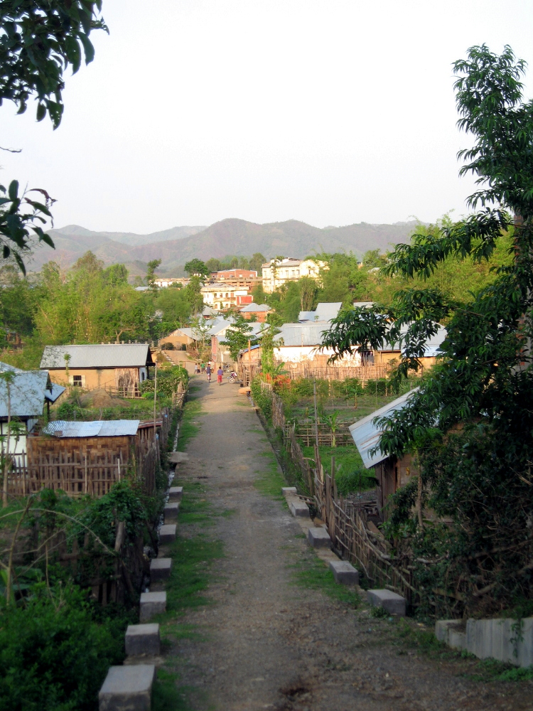 …immediately above, and for a while below, are scenes from the main town parts of Churachandpur; yes, including the pig trying to get out of his sty, which was more in a neighborhood just behind where our main house and office were located.