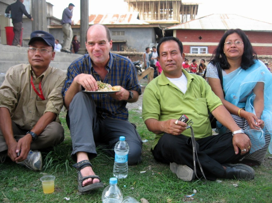 Immediately above: first day we occupied our new house/office in Sugnu (it rained, heavily) and hired staff to watch the compound, clean/cook, and help us get acquainted with our new neighborhood and its various communities. A lot of people showed up, as you see, and it was quite a full day! Below, appropriately as the last shot in this set, me eating with some of our local colleagues at my farewell party.