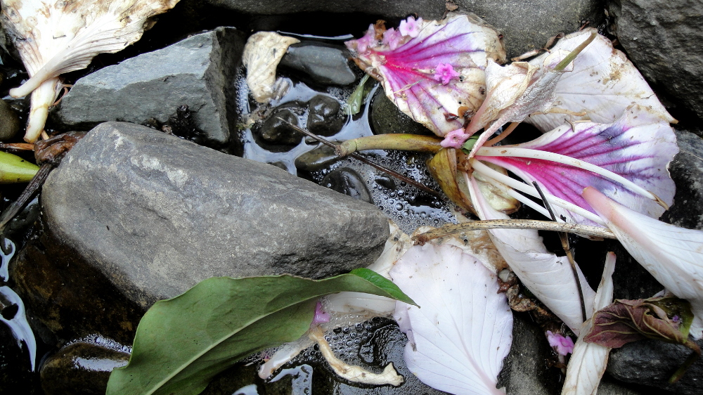 The foot bridge and the deep-purple orchids are both from one of our favorite hike resting spots, by a little creek in a valley between two ridges that are both lovely and dramatic. The orchids are standing in for any number of other stunning orchids and other flowers I saw but didn’t photograph during my time…especially these bluey-lilac orchids that were hanging enchantingly from a number of trees sometime around October, but I never happened to have a camera handy any time I saw them.