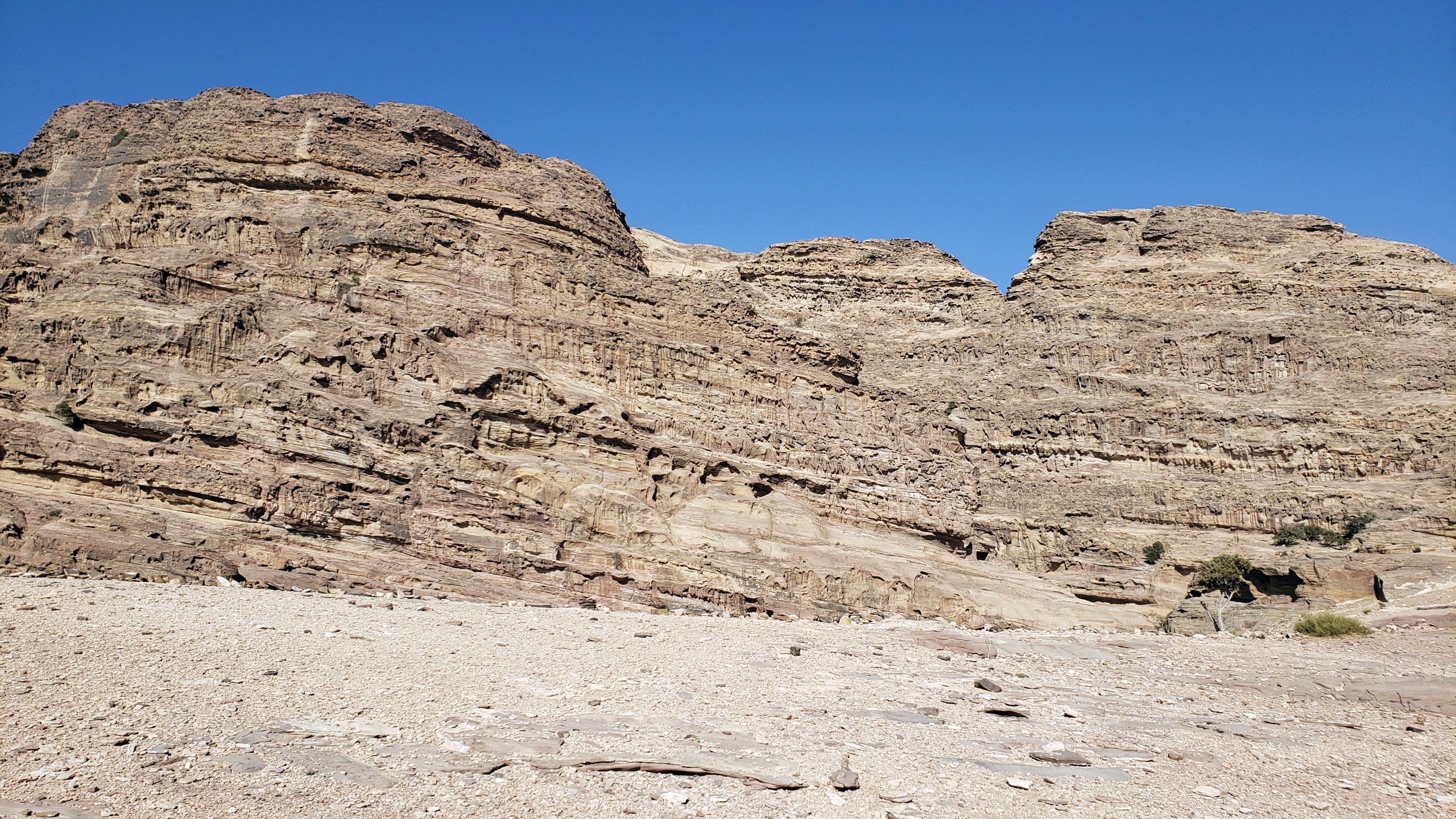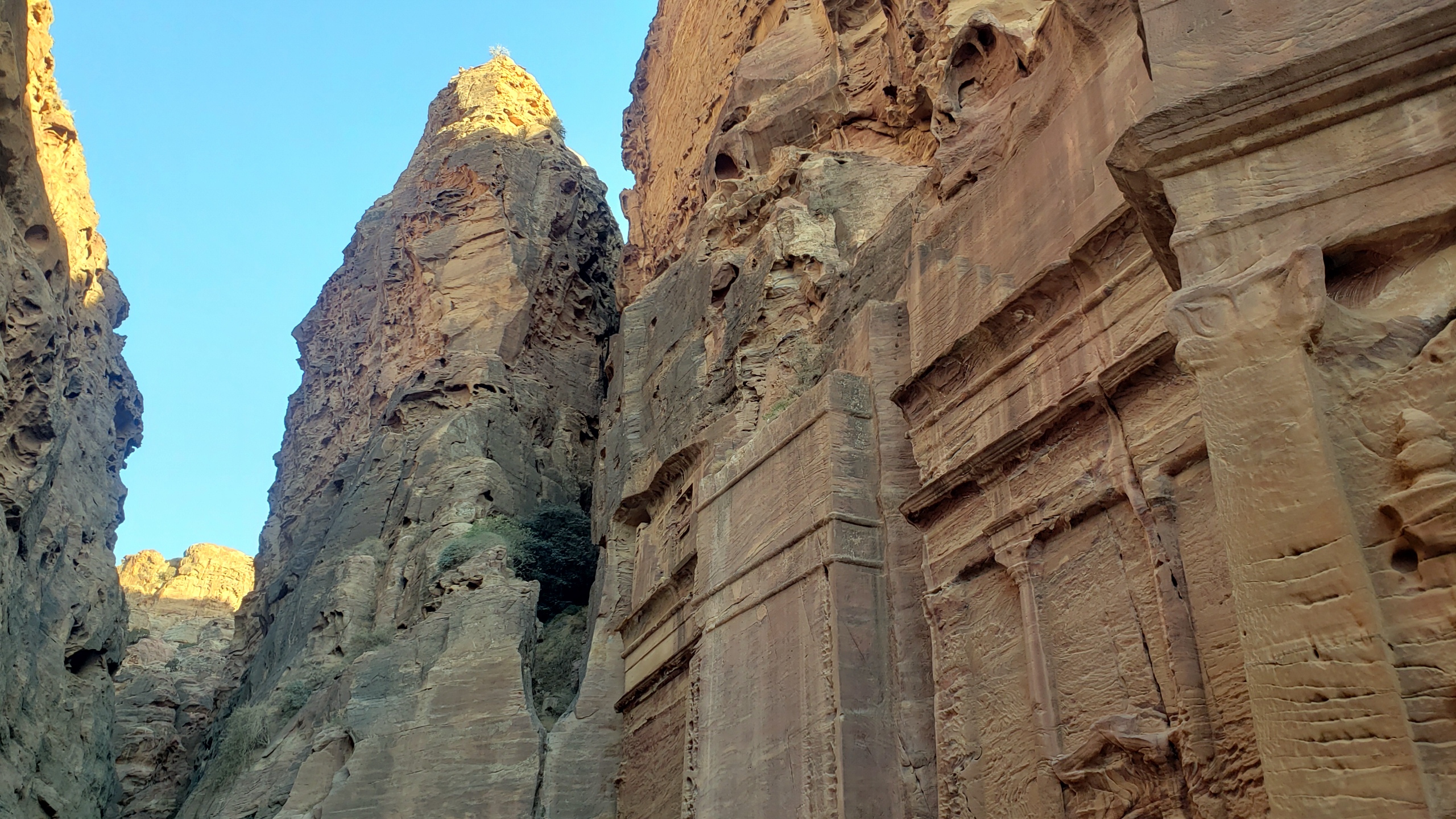 This tomb sits relatively close to the entrance, before you enter the narrow path through the Siq itself. I took a photo of it the evening before, when I walked in for the very first time and it was bathed in full sunshine: if you’d like to compare, you can find that photo in Petra.3, where I also posted the map and explained a bit about how I planned to go about this series. Hope you feel I’ve fulfilled my promises :-).