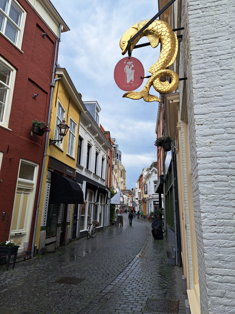 This entry is perhaps my most robust plug thus far for any of my friends, relatives or other readers who might be considering a visit to the Netherlands and / or me to remember a very important and oft-overlooked fact: though small as nation-states go, the Netherlands is much, much more than just Amsterdam. At the risk of incurring his wrath should he recognize himself, I’ll cite the example of one dear young relative whose original plan for his first-ever NL (and Paul) visit had been to use a connecting flight situation to spend a few days here, plus a few days in Stockholm. As plans evolved, said same fabulous relative decided to stick with NL only, had what I believe to have been a lovely visit exploring many cities and towns in this lovely, bike-friendly and well-organized nation…and has now planned another NL-only return visit with significant ambitions again to explore further afield than the (indeed lovely) “capital” city of Amsterdam. (Capital because that’s what everyone says it is – not, as previously noted in these pages, because it’s the seat of either the State or the government.) The connection to this current post: these are all from the lovely village of Heusden, on the Maas (Meuse) river in Noord Brabant an hour’s bike ride from Den Bosch (‘s Hertogenbosch, formally). As noted last month, I had the pleasure of spending a work-week living here at a friend’s house due to some tourist-visitor-related house swapping arrangements. I first visited Heusden on Christmas day in 2021, and shared my first Heusden posts in January 2022. You’ve seen it off and on since then, but today and in a couple future posts, we’ll be sharing more of its lovely charm. And any future visitors please note: NL is chock-full of such lovely, explorable towns and villages surrounded by moats and boasting picturesque streets, windmills and shop signs…and magnificently bike-friendly infrastructure. Just sayin. (Insider tip: you can use this blog best to plan potential visits by being sure you’re in the “full view” mode, and then looking for the small-print “categories” and “tags” that do very definitely appear at the bottom of every single post here, and then simply tap / clicking – for example on this post – “Heusden” to pull up all past posts that I’ve tagged as from Heusden. :-))