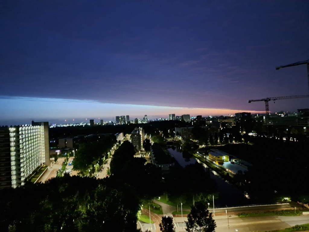 Although I bike past it several times a week, I guess I’ve not yet shown you the outside of Amsterdam’s Royal Palace, shown to the left here next to the 15th-century “Nieuwe Kerk,” so called b/c in the 1400s it was the new kid on the block after A’dam’s first 1306-built church, which as of this building’s opening became and has remained the “Oude Kerk.” The 1655 palace started life as a town hall – as noted in earlier posts about it. (And since their full time official residence is down in the Hague, this is really only where they do formal stuff that needs done in A’dam, I think.) I’ve sorta been waiting for the construction to finish before I took photos, but I liked how the setting sun lit this clouds on this evening, so here you go :-).