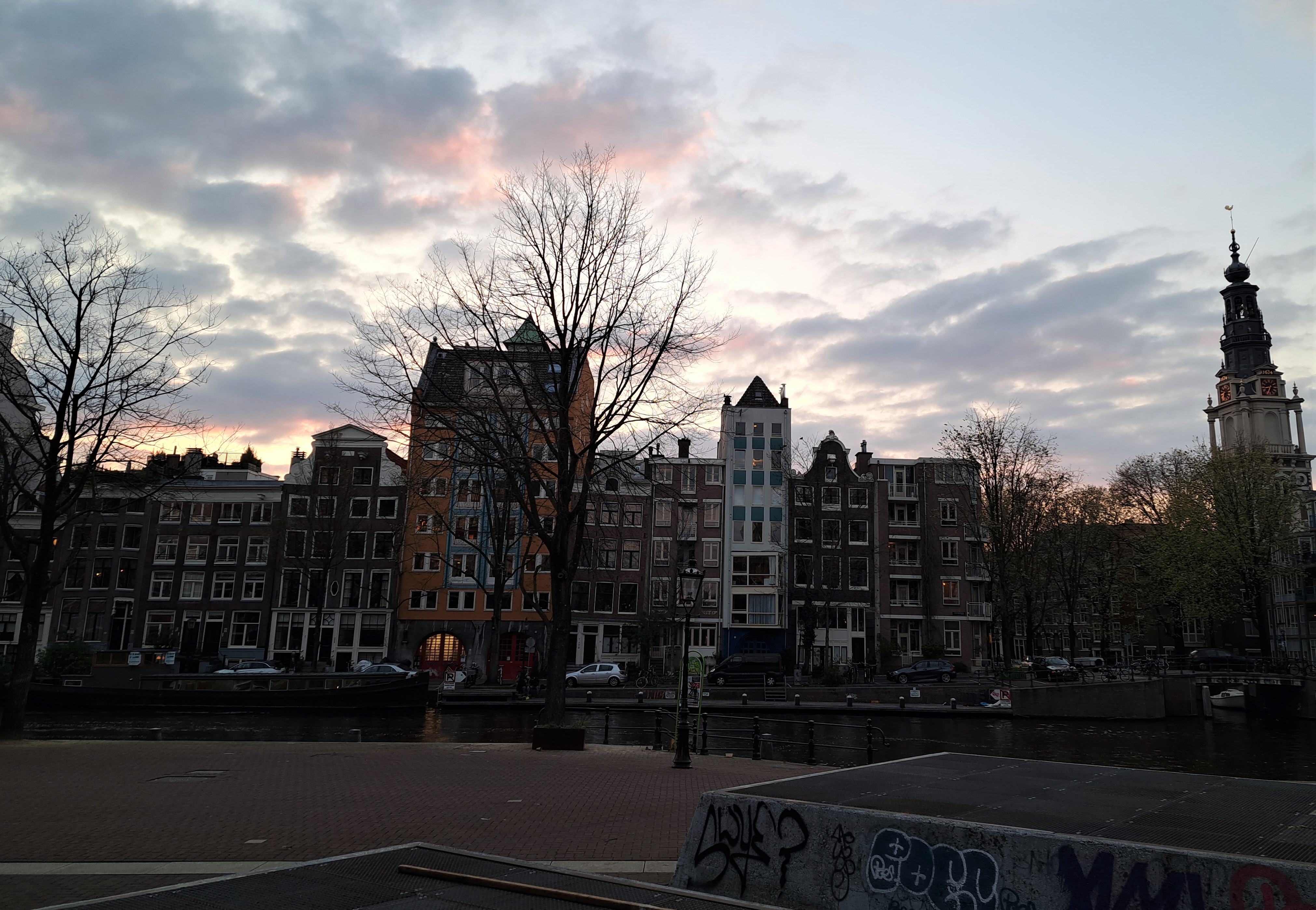 As noted in the last post, Rotterdam has a lot of funky cool modern architecture, often alongside some lovely old buildings that survived the war. This is an area called Museum Park – the tall tower is the most famous museum, called apparently Museum Boijmans Van Beuningen, closed for renovation for a few years now. The mirrored round building is the “Depot” where ordinarily the main museum houses works not currently on display. At the top left is Het Nieuwe Institute, showcasing design and architecture. The reflections of large groups of school children out for some special evening of school-kid activities, all moving in real life and reflected below the mirrored skyline in the depot building, made the experience honestly rather magical for me 🙂