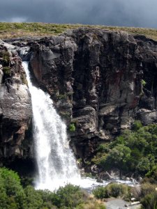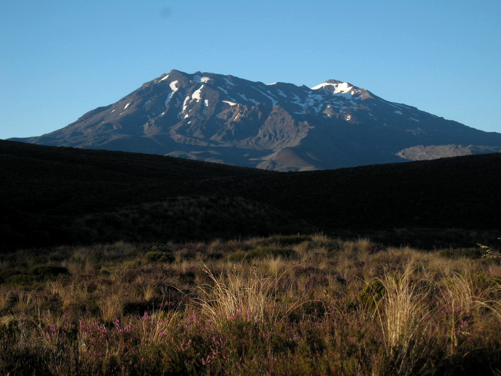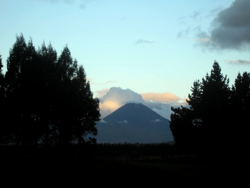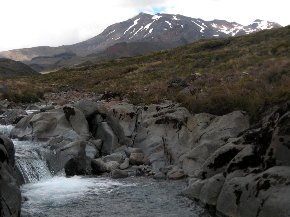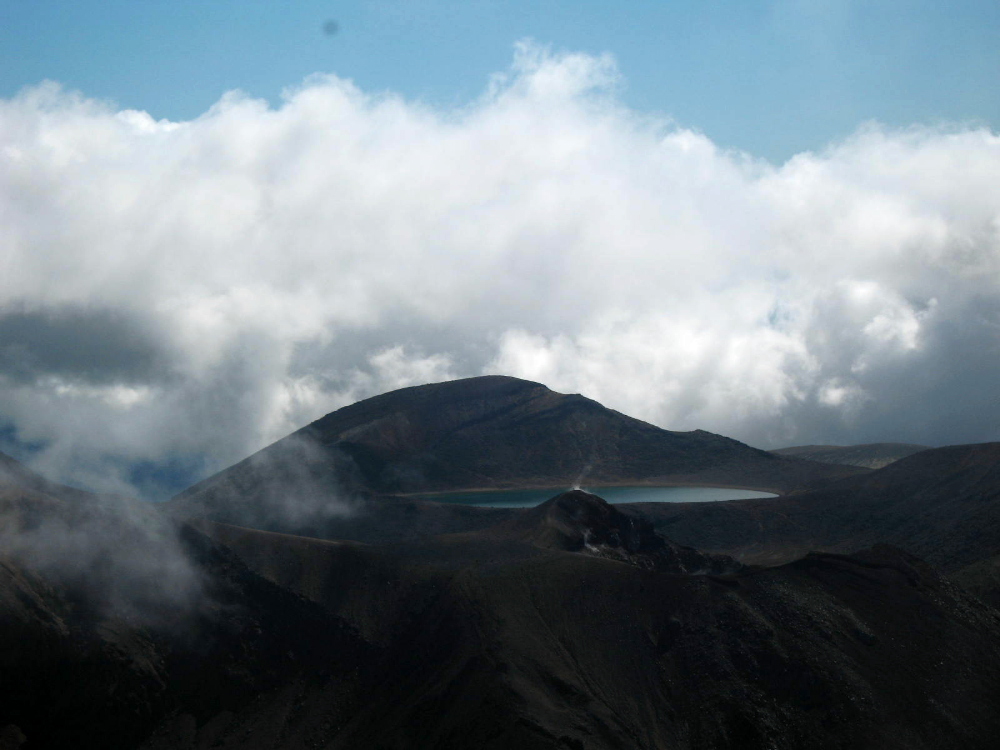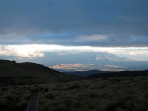That’s snowy Ruapehu, highest peak on North Island, behind the crater of Ngauruhoe; and two shots down, look to the left of the crater, and you’ll see a plume of steam coming off. Atmospheric, no?