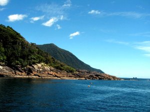 And here some shots again of the Cook Strait as we departed South Island and headed back to North Island: below, Picton Harbor from on board; and a few shots below the exit from Tory Channel into Cook Strait with North Island in the distance; and further down a panorama shot in which you see both North and South Islands from the boat in Cook Strait.