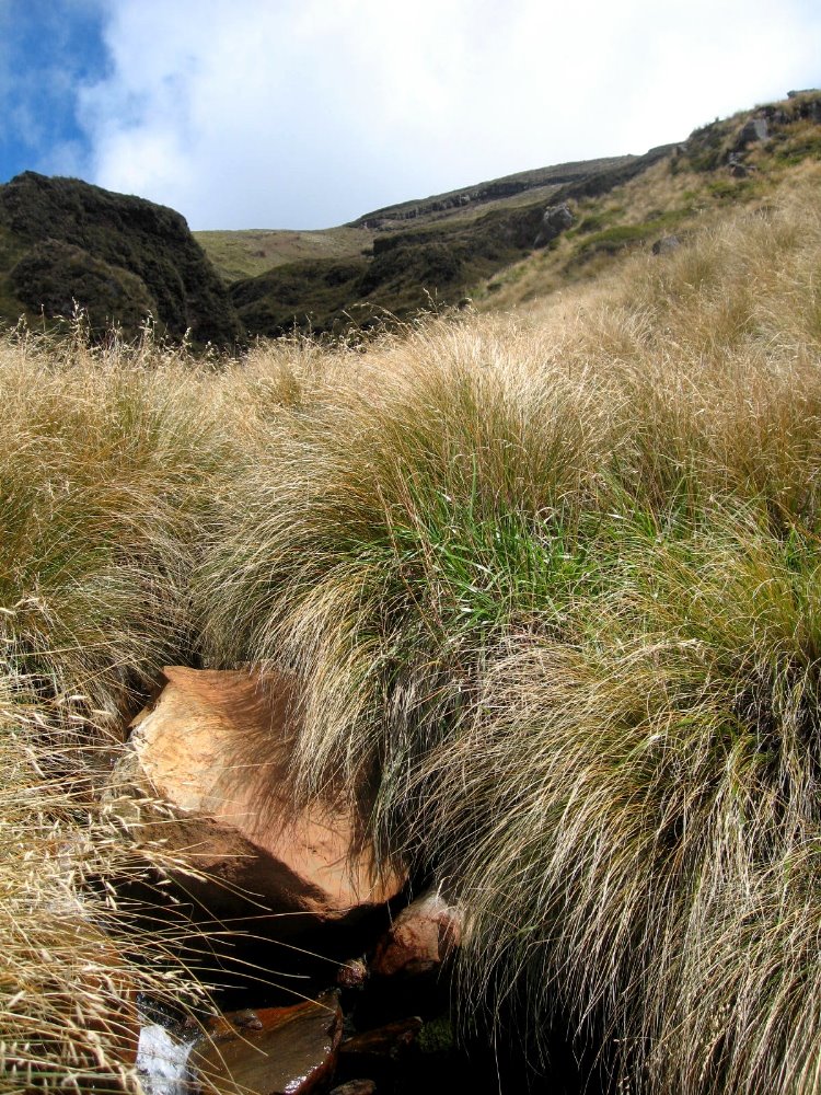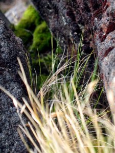 The main Crossing track doesn’t include ascending to the summit of Ngauruhoe — up which, in fact, there is no marked trail. All those little rocks with blue sky at the top of the photo, above? You wonder why they’re there? They’re the summit of Ngauruhoe. That’s the trail. It’s 1000m up, and then 1000m back down to the main trail – which itself includes some serious ups and downs for the recreational walker – and a lot of it is this slippery slidy stuff. The rest is sharp volcanic boulders — thank goodness I had my gloves to shred, or I’d have needed skin grafts afterwards. But, given the chance to ascent Mt Doom, could I really have said no? 🙂 Most of these plant shots are from the summit ascent on Ngauruhoe. The greenest one is from near Silica Rapids, lower on the slopes of Ruapehu and thus a bit greener.