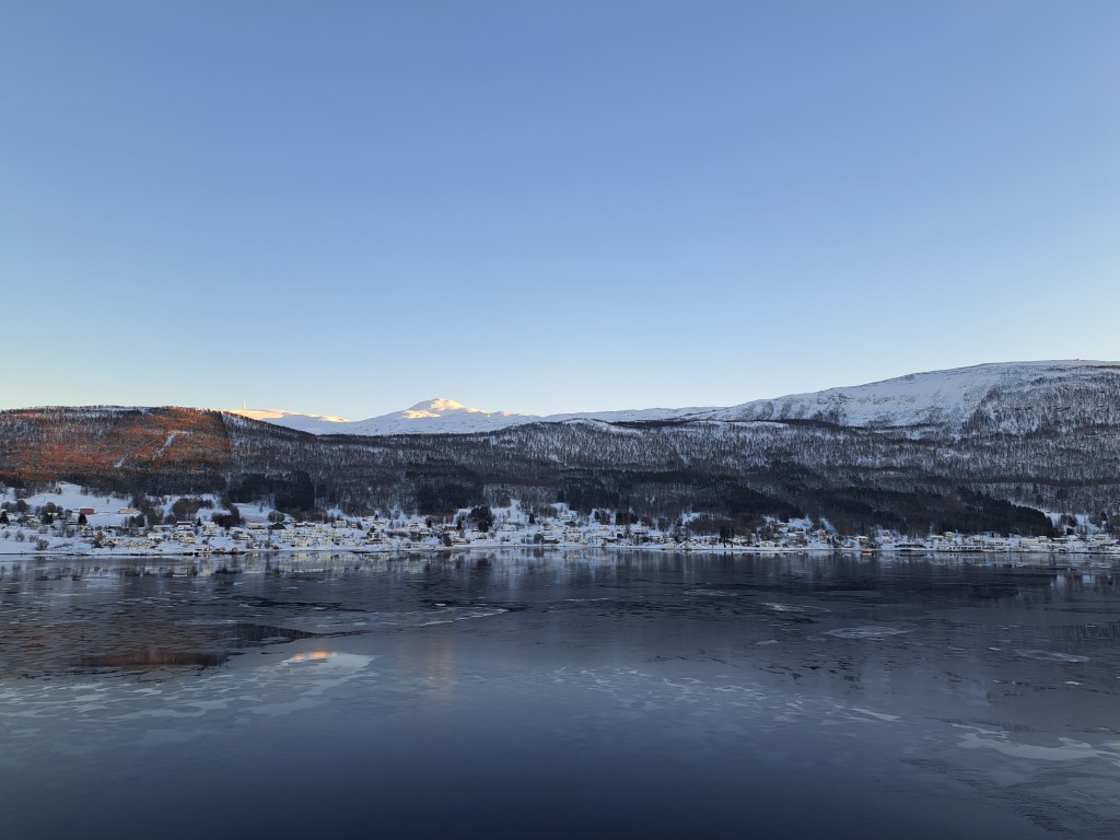 These were all shot along the way between Finnsnes and Tromsø, which means these are the last photos of Troms County. I’m not sure which town that is, above – one of the 15-minute port calls the boat made, where I neglected to photograph a sign that gave it away :-/.