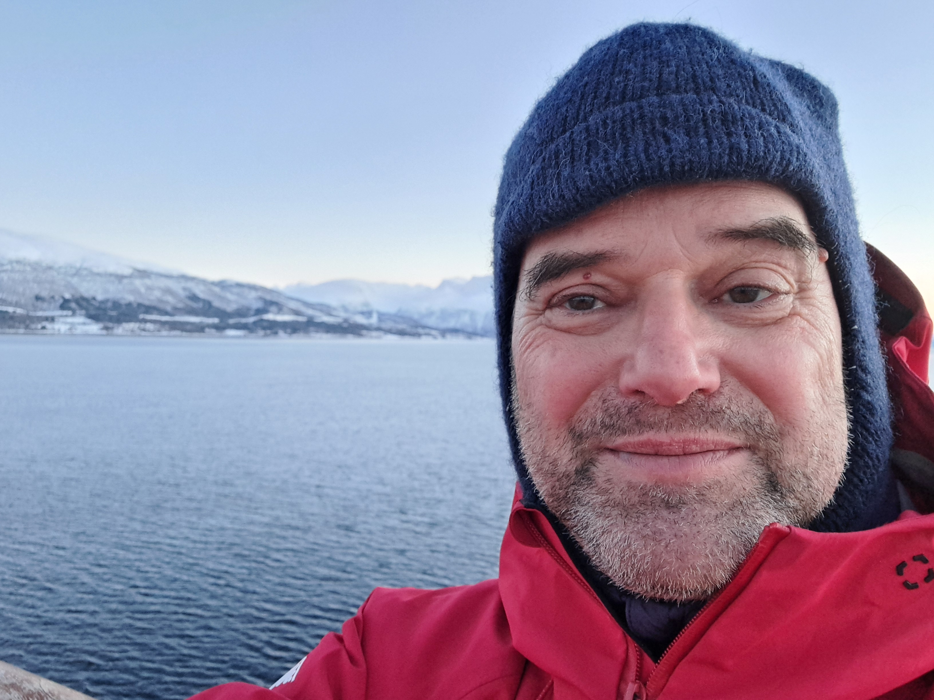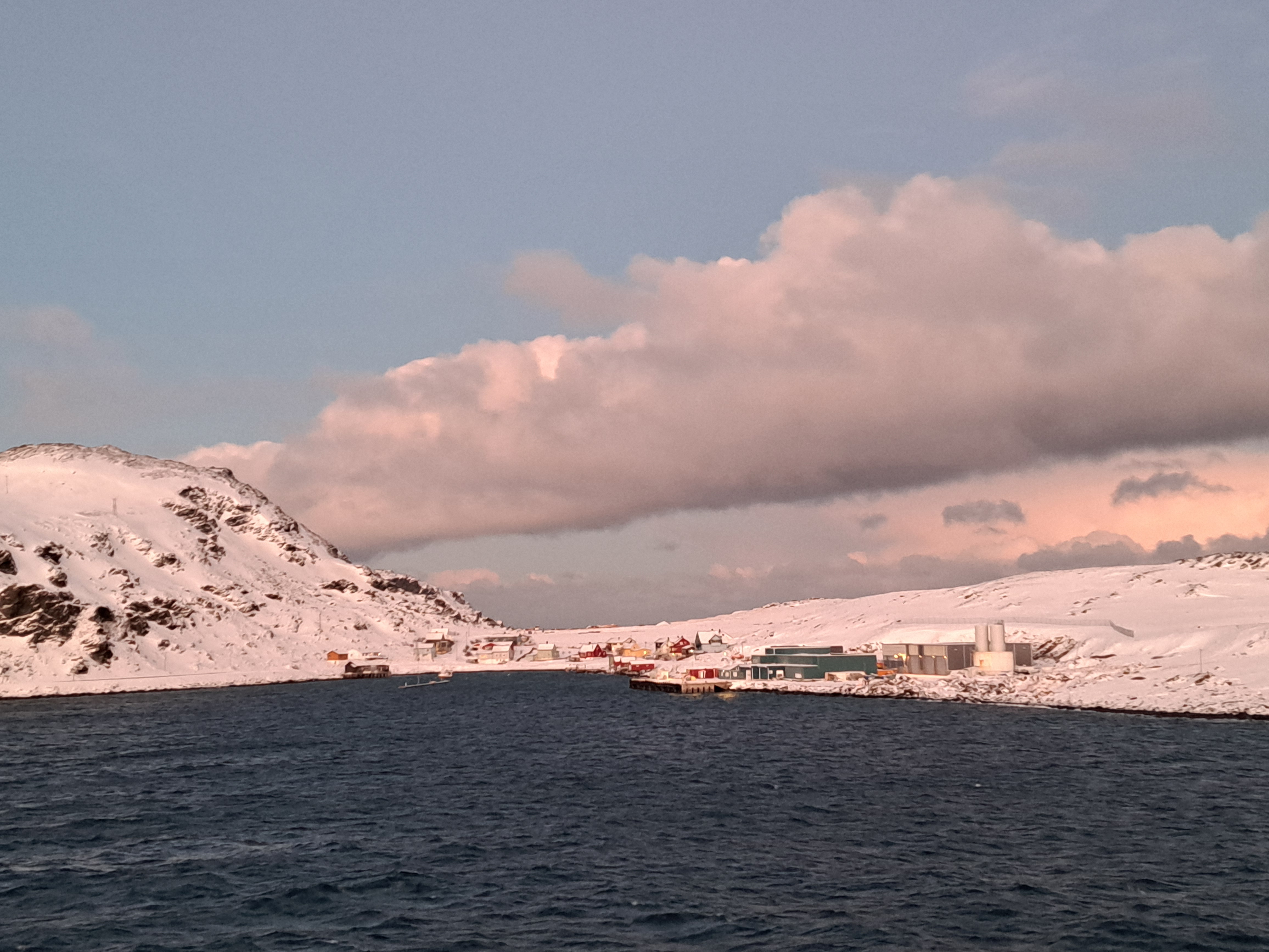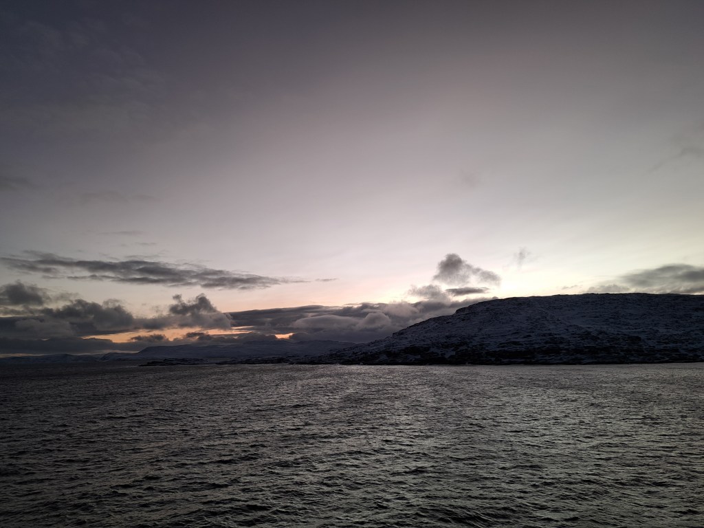 You might recall that my old friend Gary and I first scheduled our cruise in order, once in our life, to see the northern lights live. As I’ve shown through dozens, even hundreds, of posts since January – we saw so much more than just the northern lights, even with the days as short as they were. We did, as I’ve shown you only a few times before, also see the lights themselves, three nights in a row on which we were fortunate to have clear skies. I don’t have a fancy camera that allows a long exposure – but my plain old phone did capture several images, which are hard to make out if you have background light. This was our experience: the first time we thought we were looking at mist or smoke in the sky, until we noticed it was moving and changing shape frequently. The colors only emerge as your eyes sensitize a lot – or on the camera if you have a long enough or good enough exposure. At the bottom, one from Gary where the color is less rich but the lights are more visible than above or in my other small shots below.