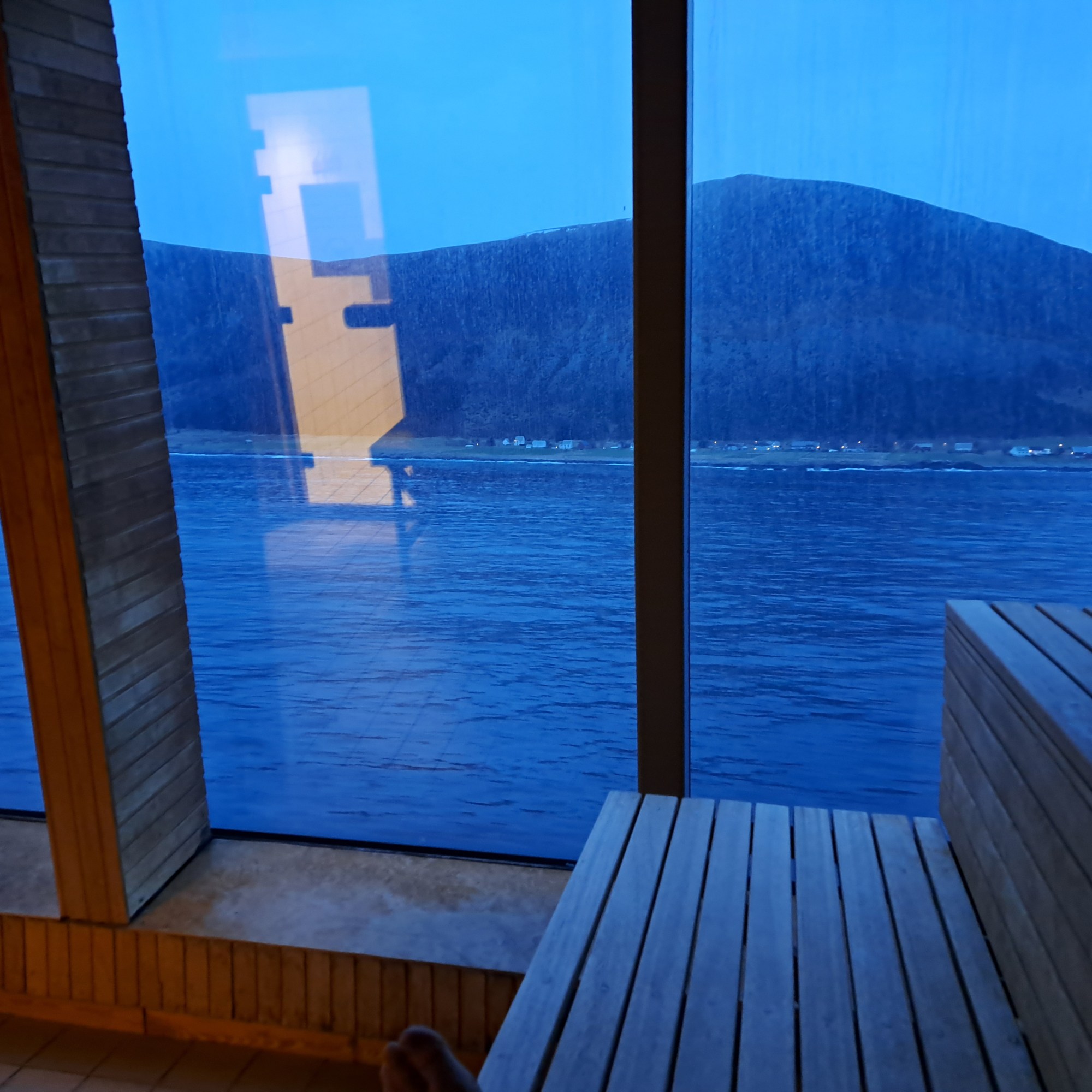 This is the town of Honningsvåg shortly after 2pm on the afternoon of January 25th, the northernmost port call on our trip at pretty much 70N degrees. I took this shot as our boat began to pull away for the journey to the last port call where Gary & I moved on for our night at the Snow Hotel, in Kirkenes. We’ve shared only one post from Kirkenes so far, but will share more in due course – there were reindeer, sled dogs, ice beds and ice sculptures in the snow hotel and so much more still to come just from that one little border town in farthest-north Norway! From the dock here at Honningsvåg, we boarded a bus for the only formal paid side-trip that we signed up for: by road up to the actual Nordkapp itself, the northernmost point in continental Europe at 71N degrees. We haven’t yet shown you Nordkapp either…but it’s coming, whenever I catch up to it in the blog. Hugs, and enjoy these views of yet another interesting place in the world. Perhaps enjoy a bit of armchair tourism and dreaming about ways you can also enjoy the world around you, as an antidote to following whatever phone, computer or media alerts might be otherwise pulling you into non-productive feedback loops? The world’s still out (t)here, friends, so do let’s remember to enjoy it :-).