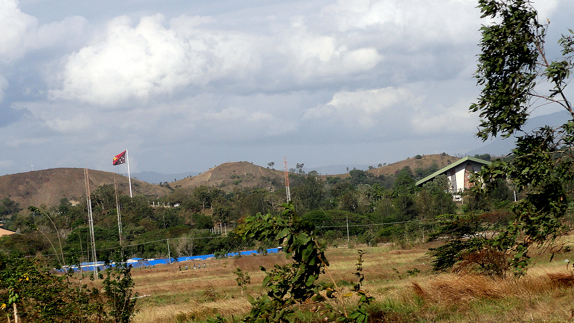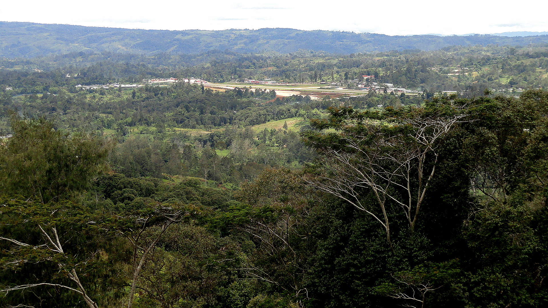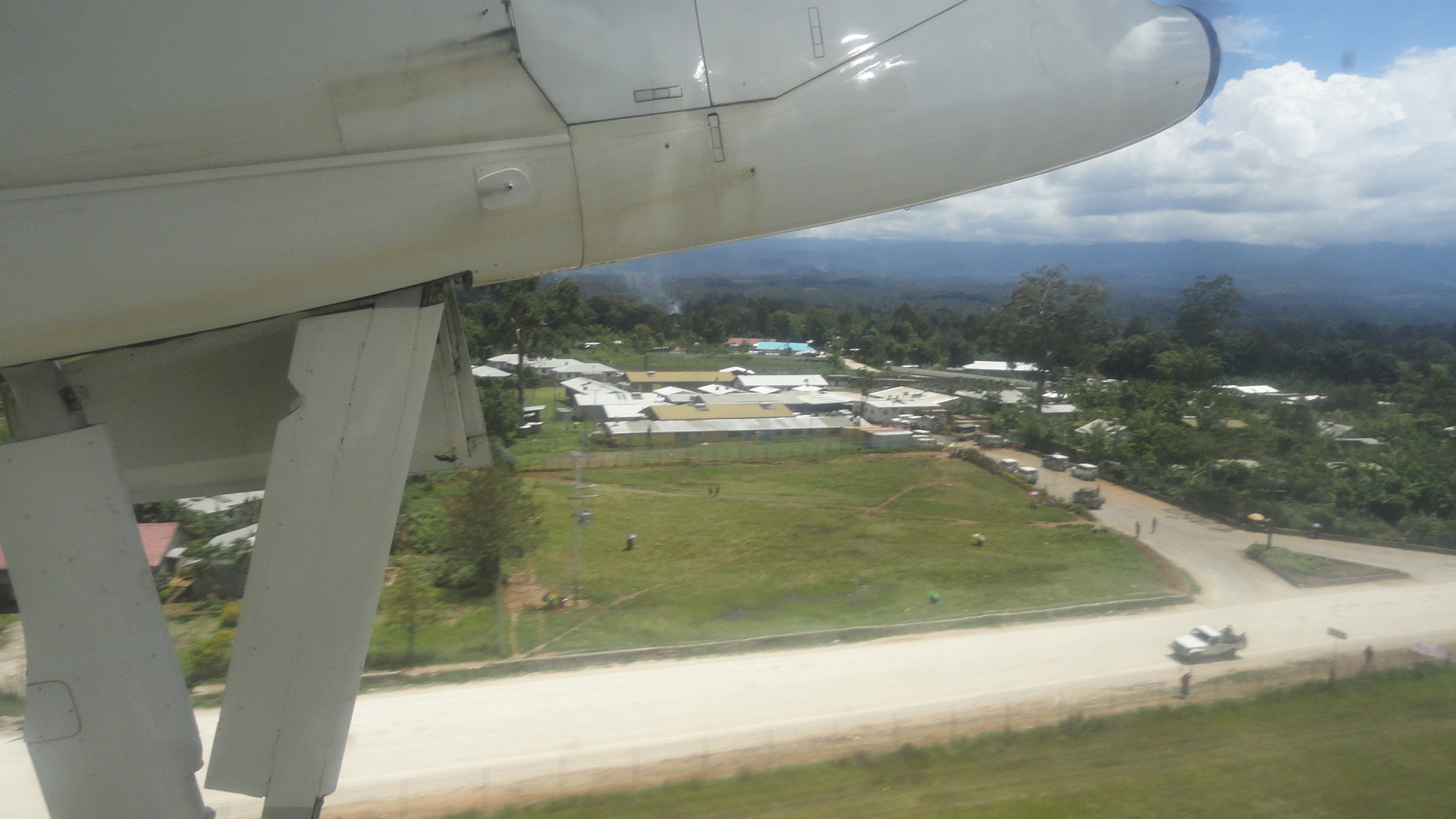 Below, depending on your browser and how it reads the layout: the airstrip at Tari; furhter below, you can see the old-town part of downtown at the top, and the sprawl of the suburban areas where I’m living and working, and where the House of Parliament is, all strewn around these lovely green hills. Well, now they’re green — a few weeks ago when I landed from Cairns they were getting mighty brown…