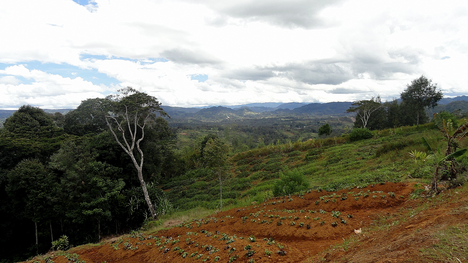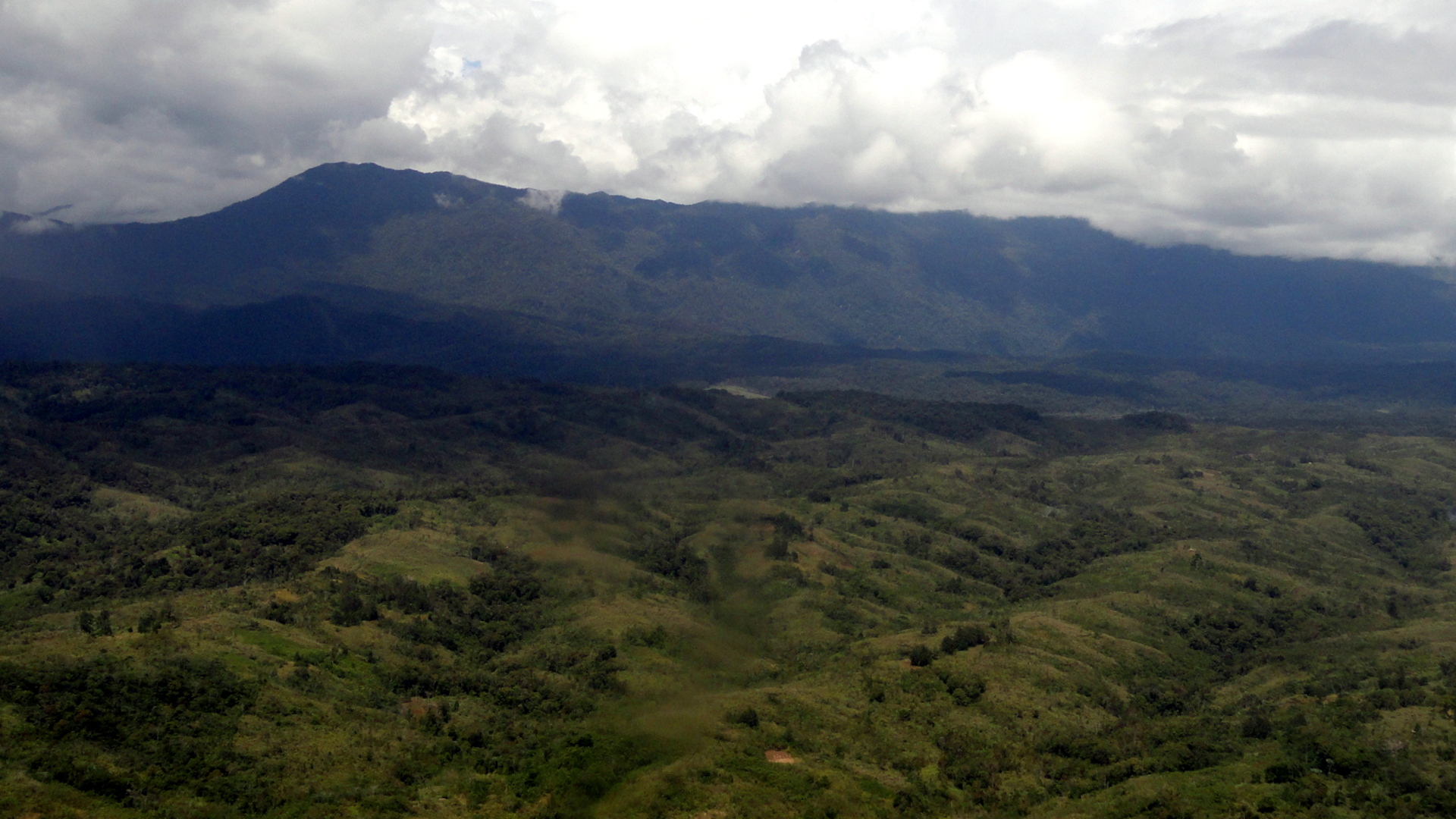 So anyway, in this post I take you on that journey as I myself went a few weeks ago – pretty much in order, from POM to the highlands. In the shots below, look for the little bumpy nubs in the landscape. Though Hela is the only Highlands region I’ve visited, I gather it is not unlike other highlands regions in that it’s both rural-agricultural by nature, and quite densely populated. As you’ll see, there are few roads but it’s in by no means wilderness. It’s highly worked landscape which has been shaped and tended by humans for 50,000 years or more. (Cultivation of taro many thousand years ago made PNG one of those places in the world where humans independently shifted from fully hunter-gatherer to at least partially agrarian.) Sweet potato, which came here via sea routes from South America several hundred years ago, is the primary crop — and I’ve tried to catch a few shots where you can readily see the nubs and bumps of a sweet-potato crop being cultivated. They are the dietary staple for most residents of the Highlands, so far as I can tell, and if you look closely in some of the shots below you will realize how omnipresent they are. Keep in mind these are nearly all Huli familial compounds, tucked away behind the lovely, well-maintained earthen ditches and walls which characterize the Huli landscape…and which, I’m told, are not so common in other Highlands regions. (If you’re not sure what I’m talking about, look at many of my past Tari posts, such as: https://somuchworldsolittletime.com/wp-content/uploads/2012/08/huli-walled-compounds-on-highlands-hwy.jpg