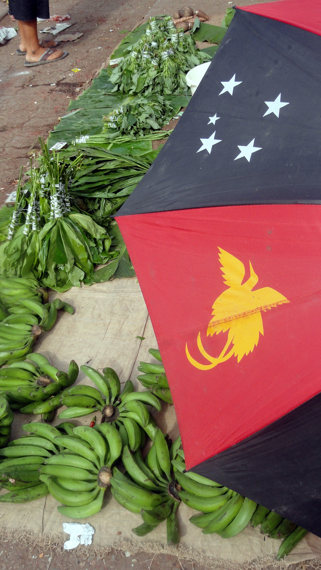 Here at smw, slt we’ve spent a few weeks away from home – first helping out at the base of our new project in Port Moresby, about which you can find links in our last post, and then visiting our longstanding project up in Tari. While at the new project I was able to ride along for a sensitization outing at 9-Mile market here in Port Moresby (pics above, and many shots below). While on the flight to Tari, I was able to get some better shots looking inland at Port Moresby & the coastline around us than I recall having a chance at before. I hope you’re not all getting bored with the aerial shots of Moresby and environs. As usual, not much story here, just pics of life and what I’ve been seeing. Btw, the umbrella above is modeled on the PNG flag.