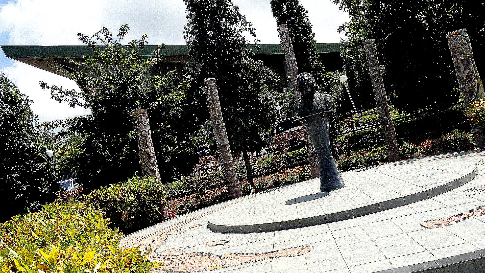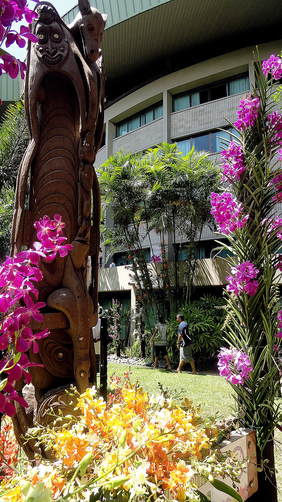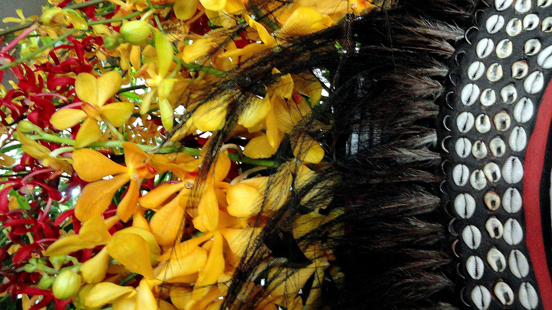 Two weekends ago, Parliament House here in Port Moresby played host to the 2013 Orchid Show — I want to say Orchid Spectacular but that may be how I felt about it, rather than its real name. As usual, I went wild, and sitting now in my camera are many photos of many more types of orchids than you, perhaps, imagined existed. The photo above is the only one with orchids for this post, because … well, a) I have to break them up so the entries are less imposing and b) I haven’t sorted all the orchid shots yet. So what you get here are a few more shots of Parliament House than I have been able to show you before. It’s virtually next door to where I’m living – where I sit as I type these words – but so far I’ve only shown you a few aerial shots of it (https://somuchworldsolittletime.wordpress.com/2013/02/24/beauty-big-and-small/, for example), or a far-away shot in last year’s independence-day entry, which also included the (so far) only views of the ever-popular funny-looking cassowary. (Here, if you’d like to see it again: https://somuchworldsolittletime.wordpress.com/2012/09/16/png-37-years-of-independence/ — and BTW: I have confirmed that the cassowary egg which formed part of a peace accord in the highland some months ago would have been for consumption, not for any other purpose.) Also for the record, I promise to do my very best, before my time here winds down, to get back to the national botanic gardens and try for more shots of cassowaries, birds of paradise, tree kangaroos, and other unique fauna you will not find elsewhere. For now: enjoy the arts of PNG as displayed at this proud national symbol on a festive weekend.