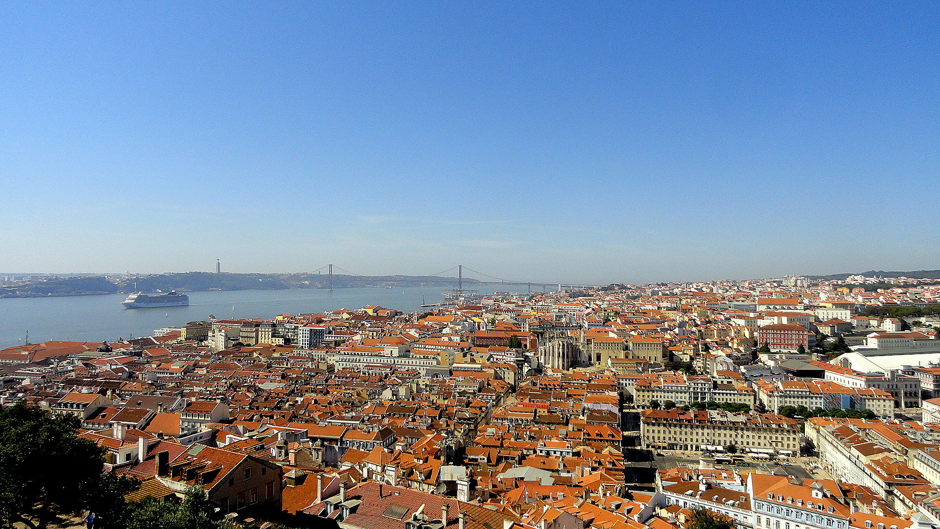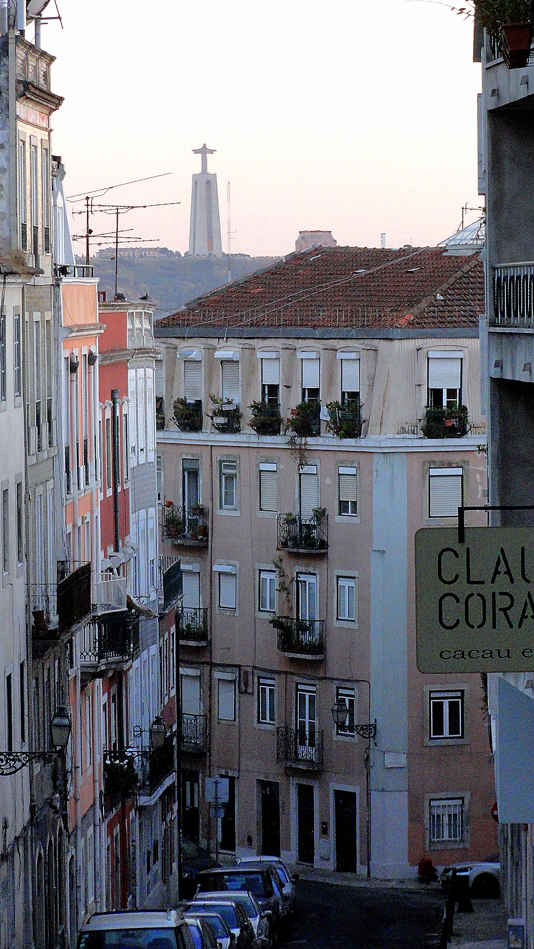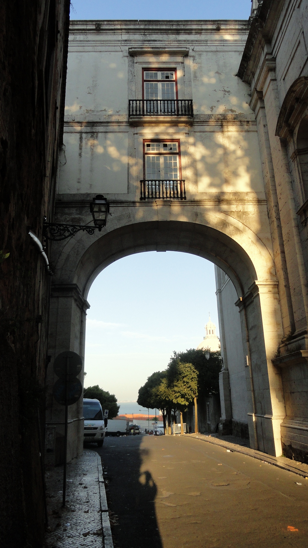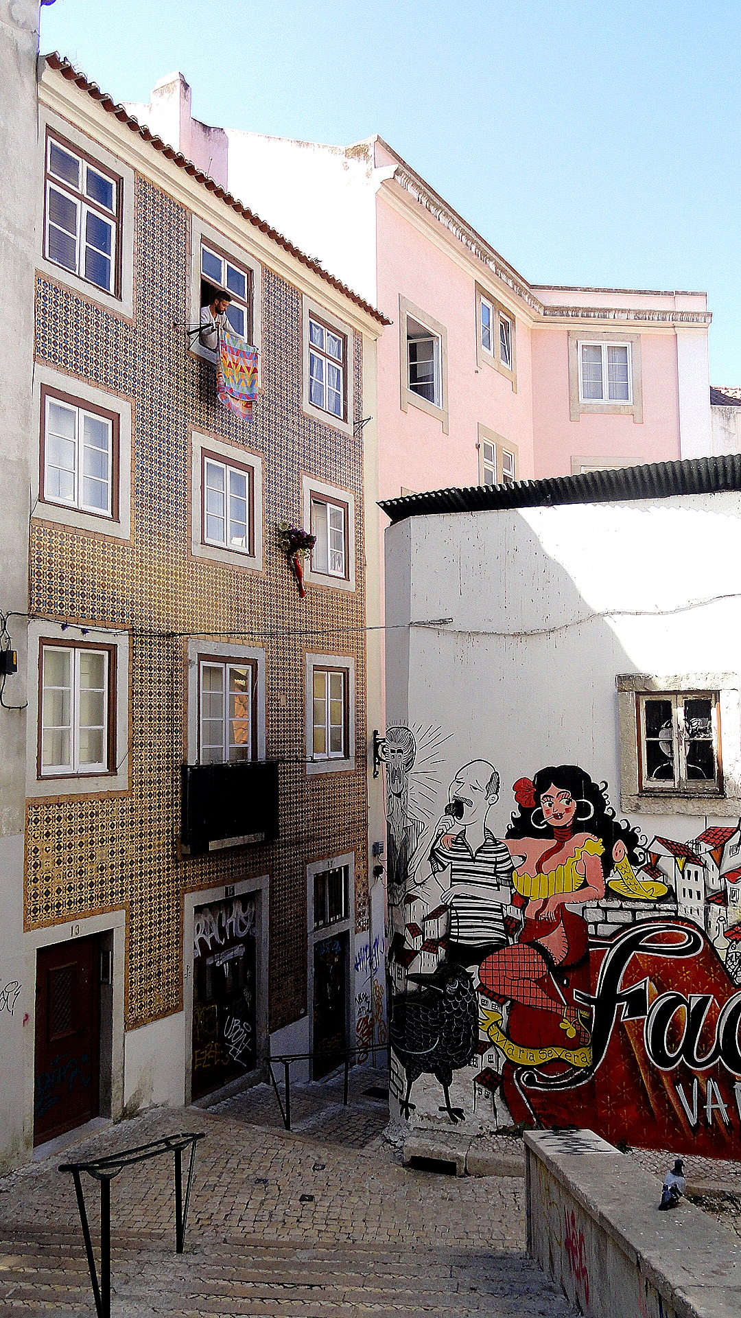 Rather like the endless beauty and discovery I found below sea level at Osprey Reef in the Coral Sea, I found that nearly every street corner I turned in Lisbon revealed a new vista I didn’t want to forget. And I walked a lot – as I always do when I arrive in a city where walking carries little risk of being mugged :-). Much as I surrendered to lovely Lisbon and went wild with the shutter of my camera, I am surrendering to the reality that it’ll be a while until I’ve sorted all of the photos from Lisbon, and so I’m posting the first half now. You the wonderful readers of smw, slt can determine whether you see the rest of the Lisbon shots. What remains to be sorted are the final day’s shots, when I went inside the Castelo: that’s the old fortress atop the green hill you see above, and which you’ll see in various shots below. I spent most of a lovely sunny day exploring that old fortress which began as a Moorish fortress and became the seat of power in the newly-formed independent kingdom of Portugal in the mid-12th century. Then there’s a sub-chapter I’m considering, which could show you ceramic sculptures and tiles, along with some peacocks, peahens, and tree fungus from a visit at the city museum. Let me know if these are more than enough Lisbon, or if I’ve piqued your appetite enough that you’d like to see more. Believe me that I’ve edited out a ton of photos…and I’m still left with a lot.