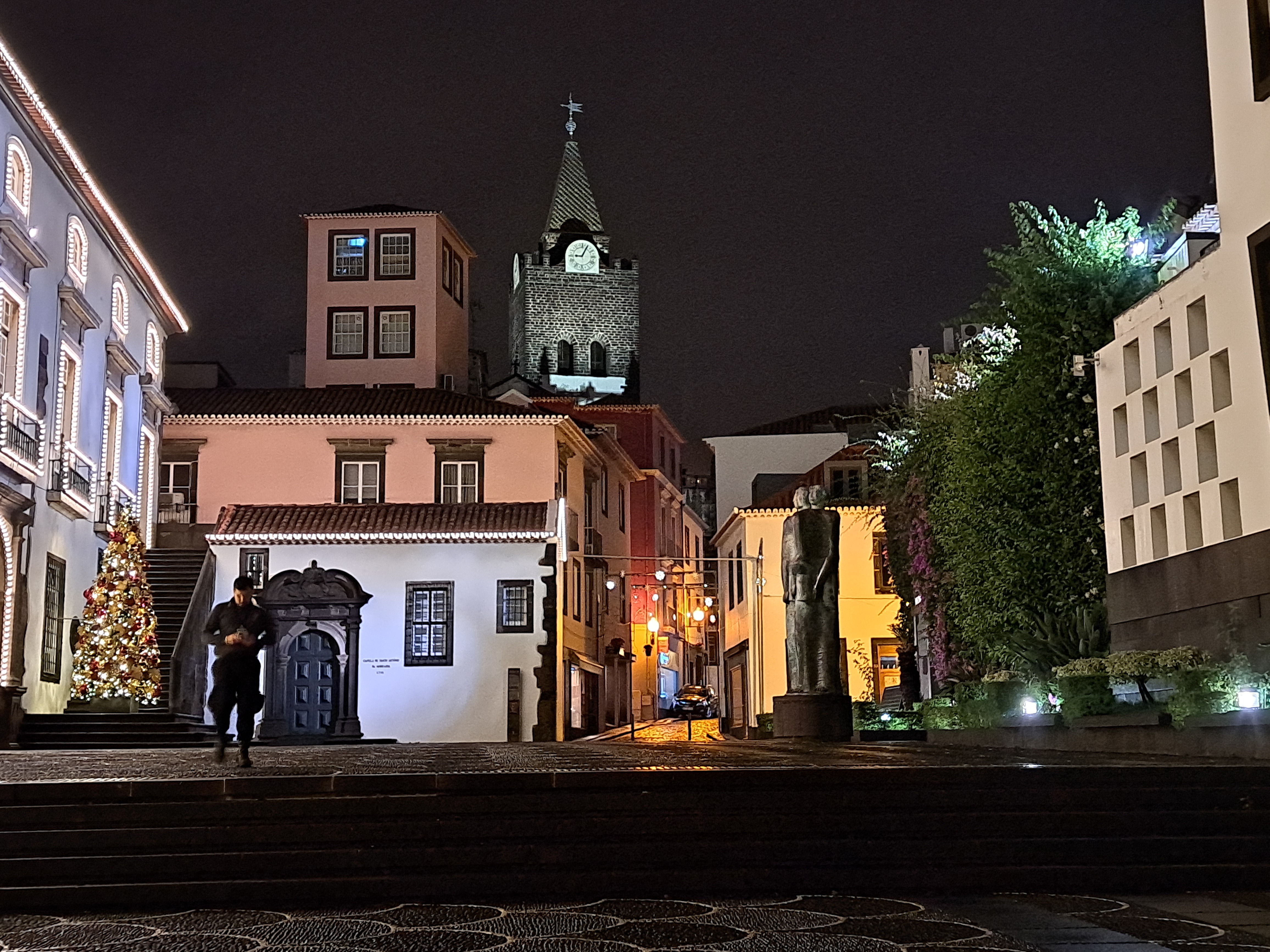 Funchal really does Christmas lights in a big, big way. Notice the lighter blue lights in the peaked roofs on this waterfront cafe, just above? Those are volcanoes erupting, and though I tried, I couldn’t get the video to upload well nor did it really show the eruptions well enough to bother… Last holiday-lights show from Funchal here, and then some from Amsterdam next, which as you may recall from many posts last year does its own winter lights quite nicely :-).