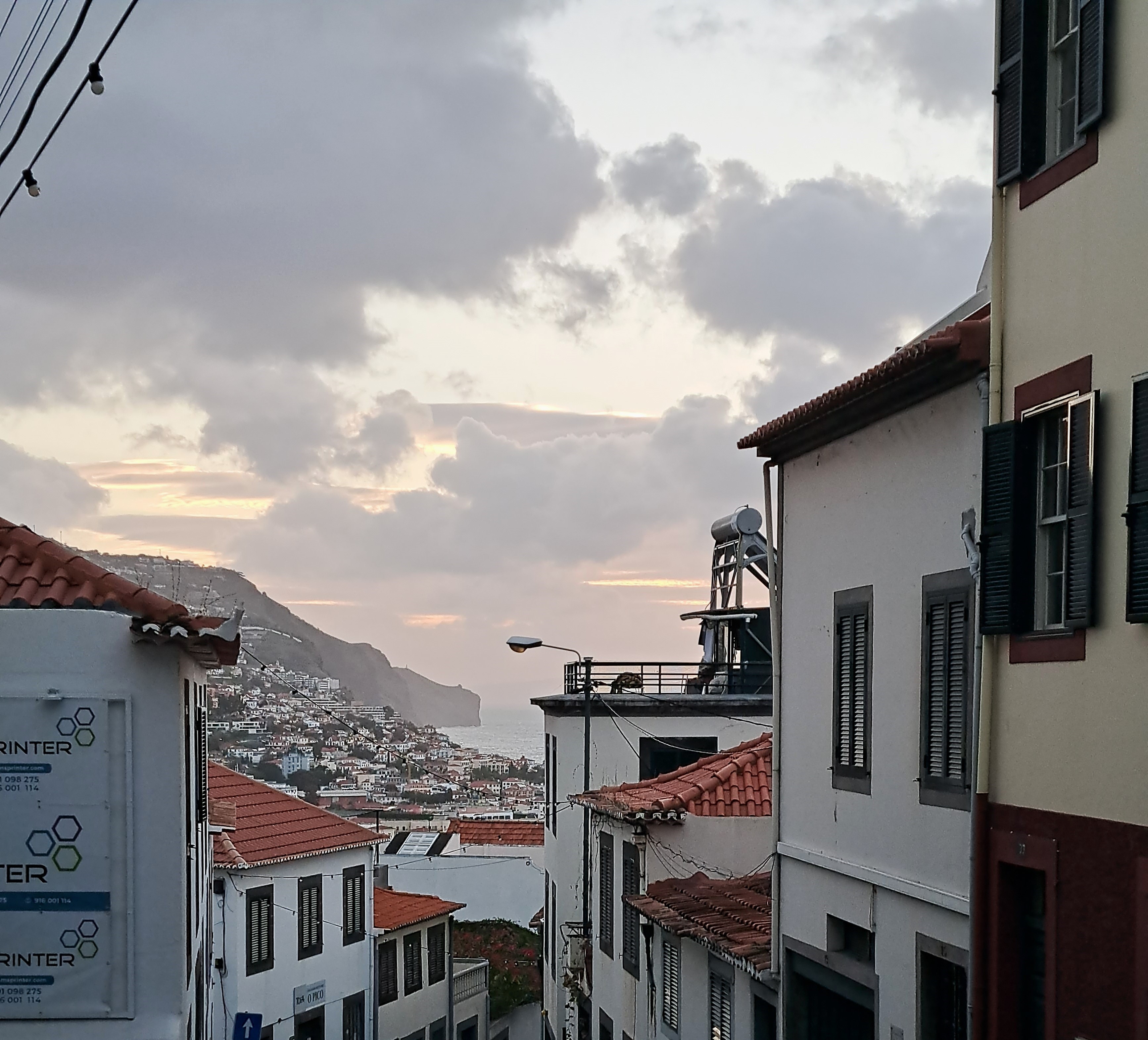 Turns out I neglected to let folks know that this particular trip is purely a vacation trip, not a stitch of work to be done. Since both John & Maria have asked, thought it worth stating that I’m here for the 2 hours more of daylight that Madeira gets at this time of year, plus just a change of pace and place…to a place where mountains, beaches, hiking paths, lovely architecture, interesting history, and world-famous Madeiran wines are all readily reachable. As are the beaches and the gorgeous coastline :-).