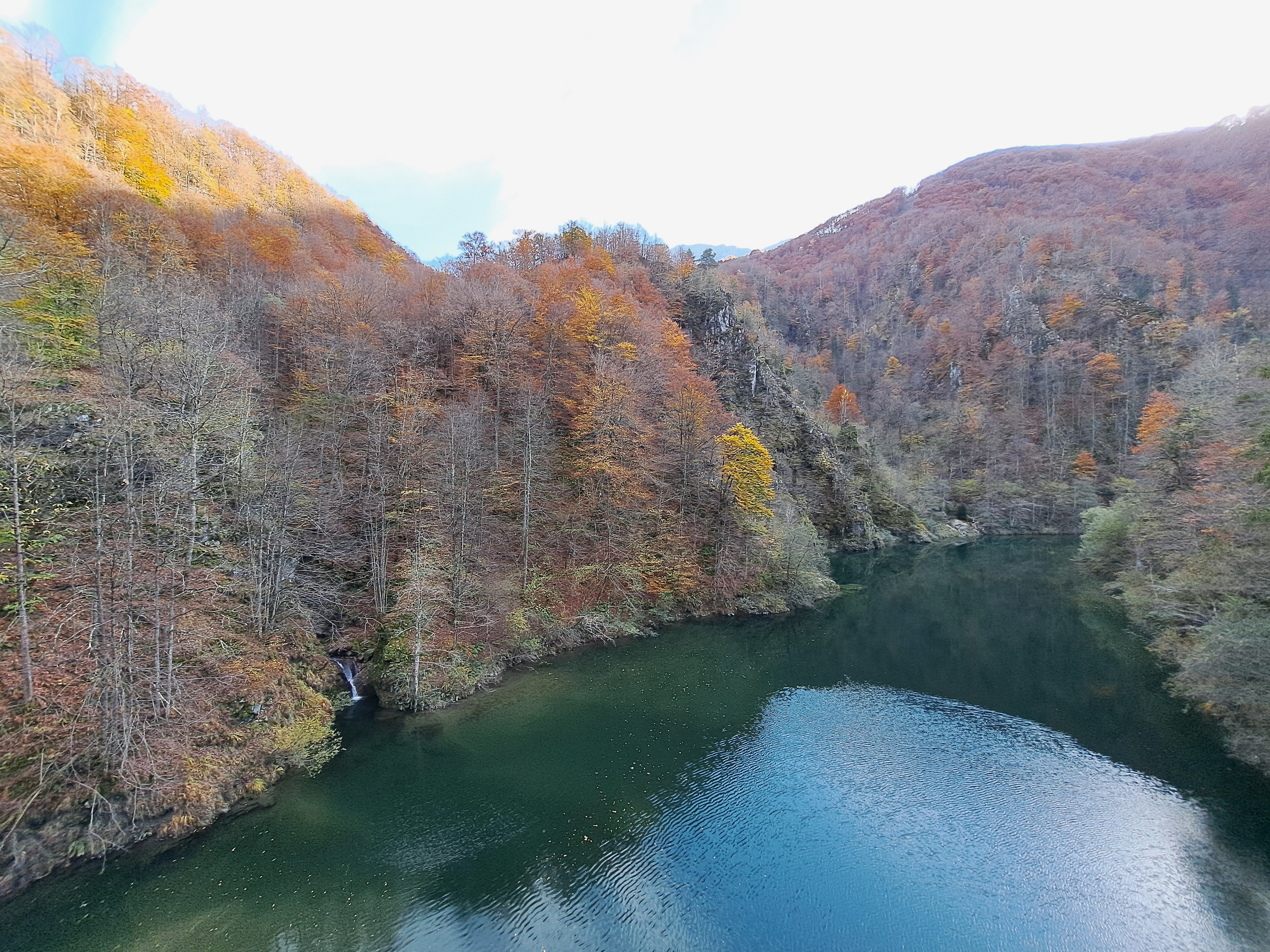 We’re in the hills above Bellinzona, walking toward Castello di Sasso Corbaro, which you can see at the top. It’s one of the three castles guarding three key passes into this valley which gives access to Lake Lugano, into which this stream above and below will flow. (More about all that, quite soon.) Below, you’re looking pretty much west to where you can just make out Lago Maggiore’s northeasternmost arm.