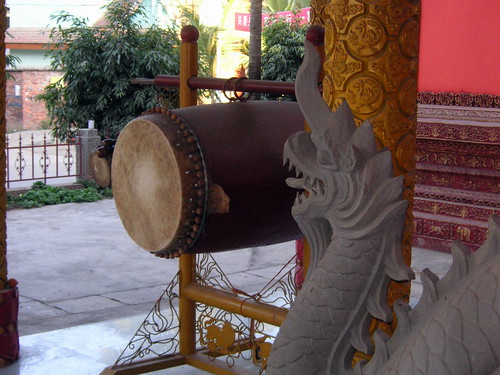 jungle park, and is best known as the home of a band of about 40 wild elephants. (If you’re curious about the blue thing in the shot, it’s a cable car that connects the two entrances to the park: Chinese tourist sites seem to feel cable cars are de rigueur.) We spent parts of two days there, overnighting in houses built up on stakes so they’re among the trees. They’re built at a bend in the river where, one hears, some of the elephants occasionally come to drink and wash themselves in the morning.