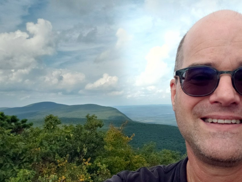 In the northwesternmost corner of Connecticut lies Bear Mountain, the tallest peak in that state. (Note that I don’t say “highest point,” because in fact there’s a higher point in CT but it’s on a mountain whose actual summit is in Massachusetts.) Over the summit of this mountain runs, of course, a section of the Appalachian Trail – which, for those of you perhaps unfamiliar with it, is a magnificent mountainous trail that runs along the spine of the rocky mountains in the coastal eastern states of the US, all the way from Georgia to Maine.