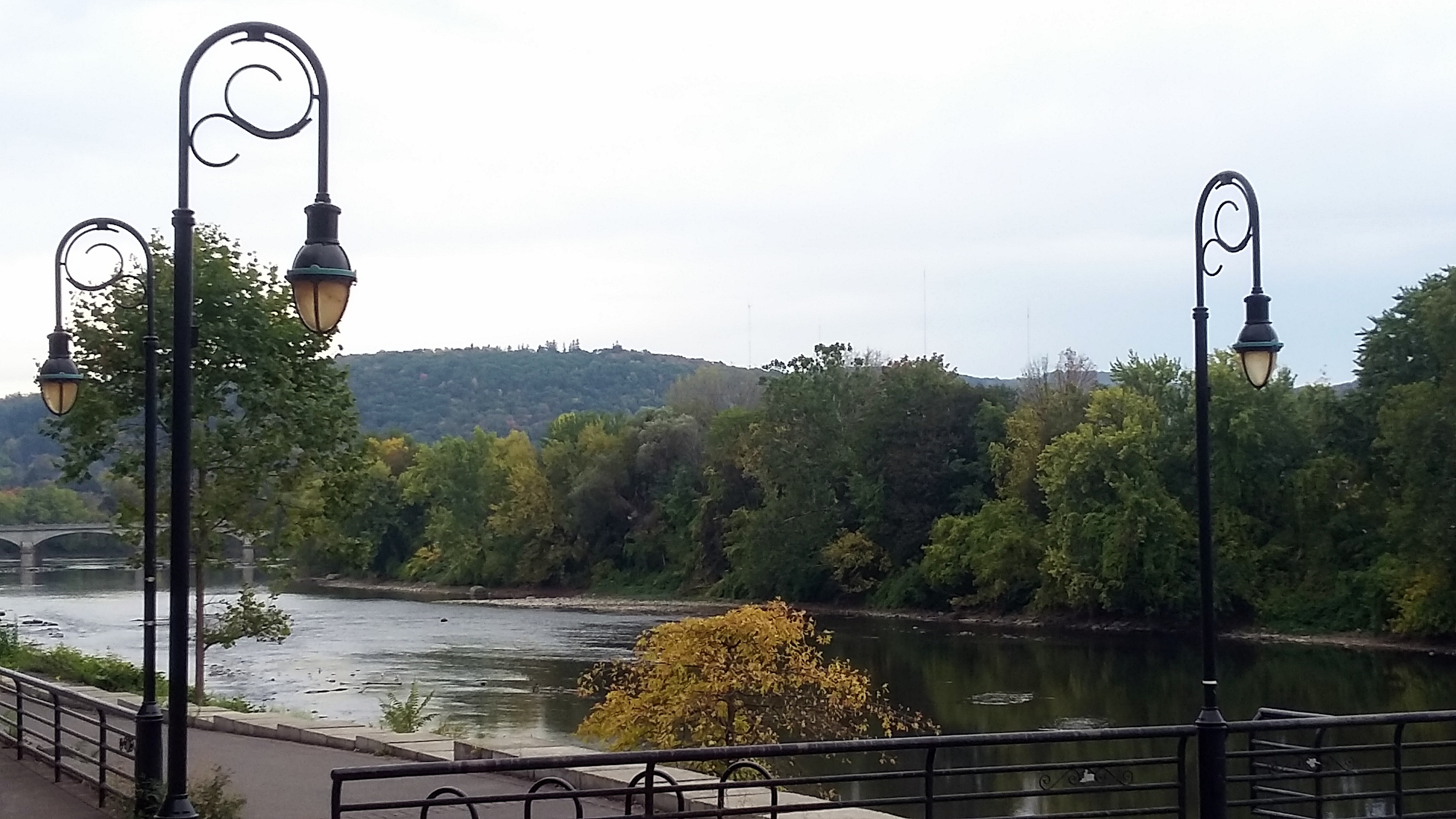 First, full disclosure that these photos were all taken in the autumn last year, not this year. 🙂 Since I didn’t post them right away last year — too busy with family and personal health stuff, plus chronicling the fires around my home out west — I decided I’d post them as the autumn months returned, this year. In this post are many photos taken in and around Syracuse and Skaneateles, in the northern region of New York State known as the “Finger Lakes.” You’ll also see a few photos taken as I walked around Binghamton, in central-southern New York State at the confluence of the Susquehanna River with its lesser-known tributary, the Chenango. I imagine Binghamton was an important manufacturing town and transit hub in earlier eras, although I admit I do not know its history in any detail. I went to Syracuse for an excellent seminar at Syracuse University’s Maxwell School; and I passed through Binghamton with extra time awaiting a connection, during the bus journey from Syracuse back to visit my mom in Northern New Jersey. It’s certainly true that Syracuse is a lovely city whose past – a key city on the all-important (in the 1800s) Erie Canal – was more economically robust than its present. Those seeking explanations to my homeland’s current highly-divided political climate might well find some explanations in such towns as these, and the changes in economic models represented by a former Erie-Canal hub town as compared to, say, Silicon Valley where there are many ideas but very little actual manufacturing. For what it’s worth.
