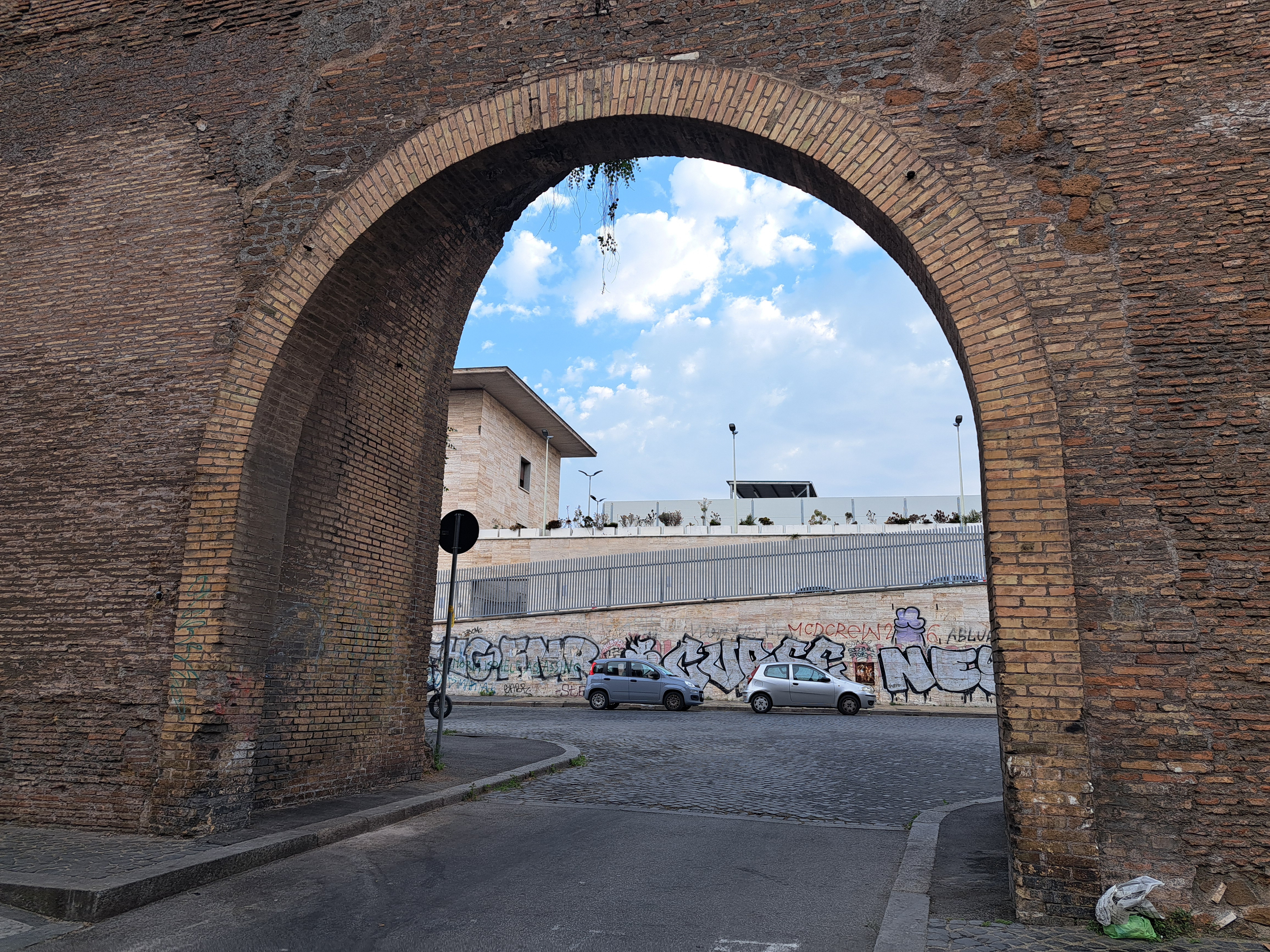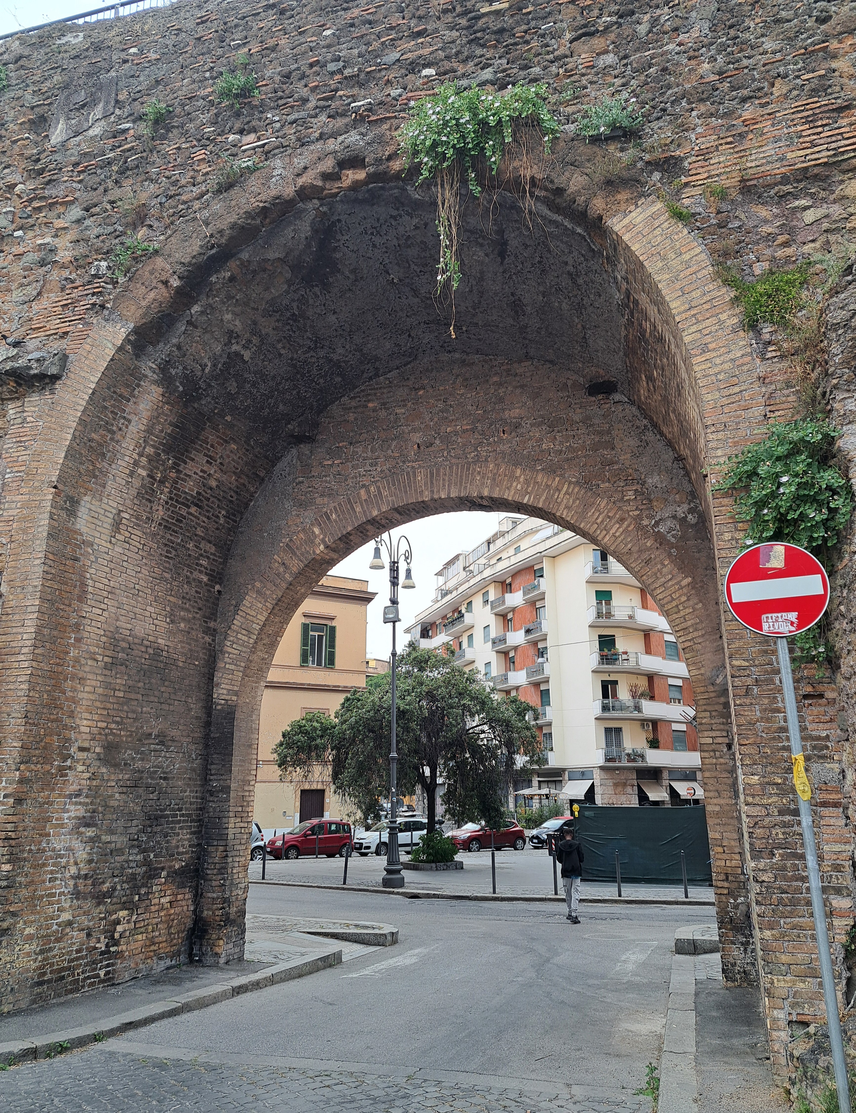 Below, some of the older city wall entrances from the Esquiline neighborhood I stayed in during my short June Rome visit, and above a lovely shaded walkway across the street from the park called Piazza Vittorio Emanuele II.