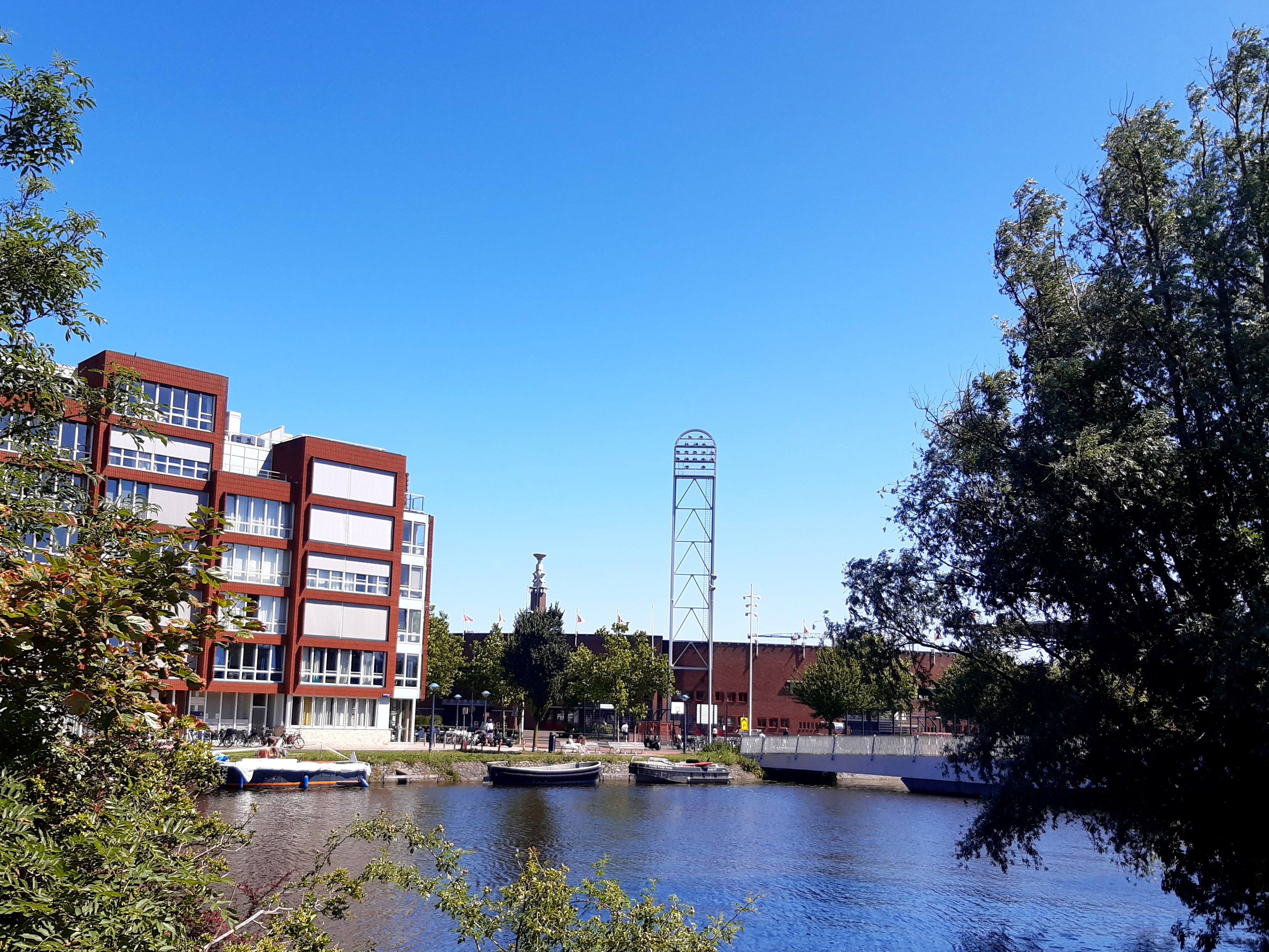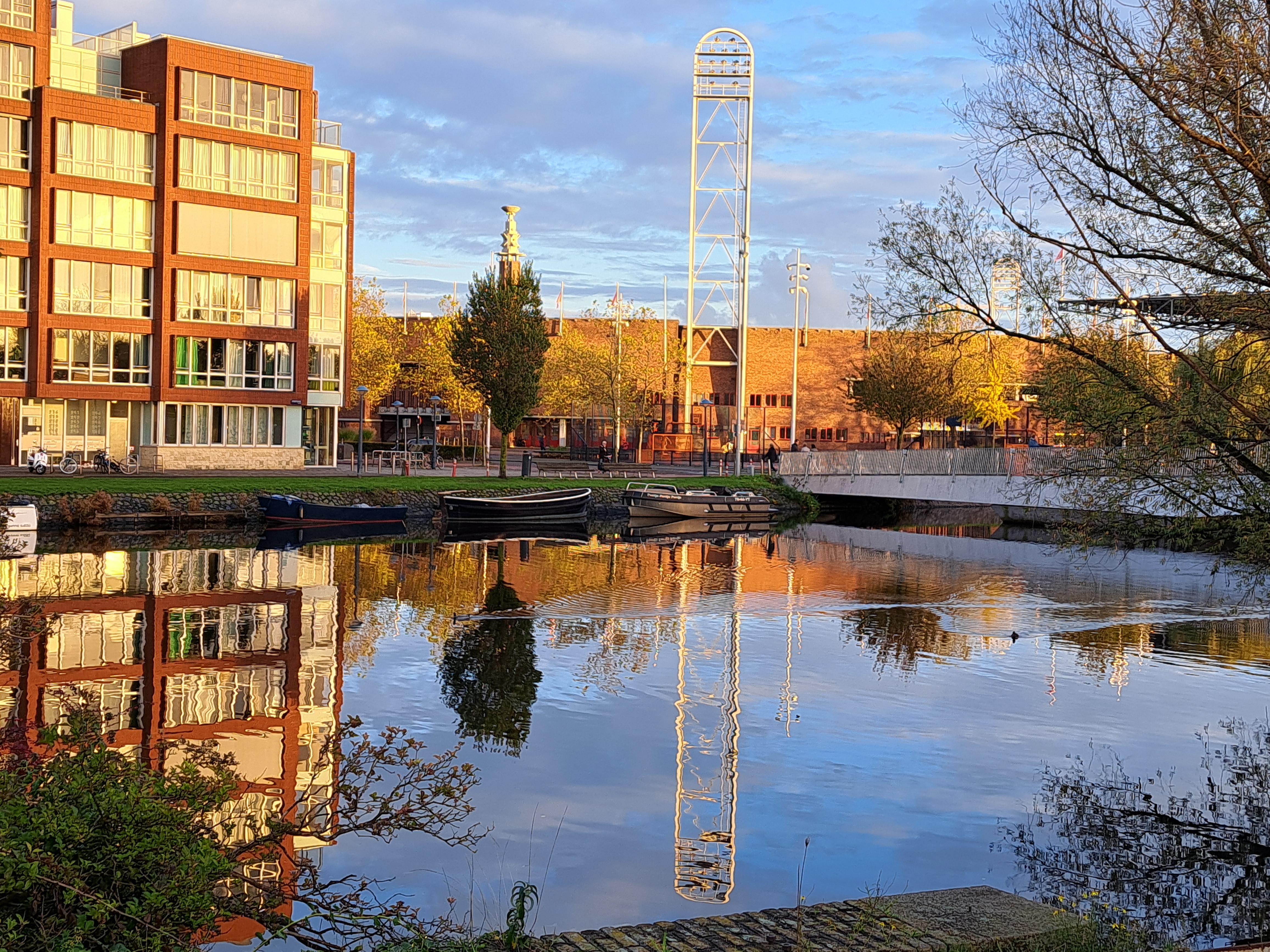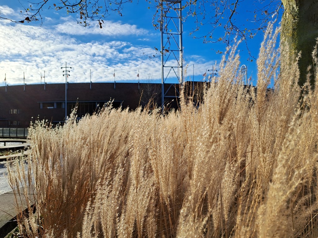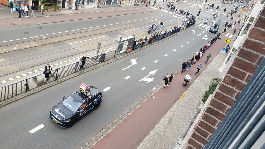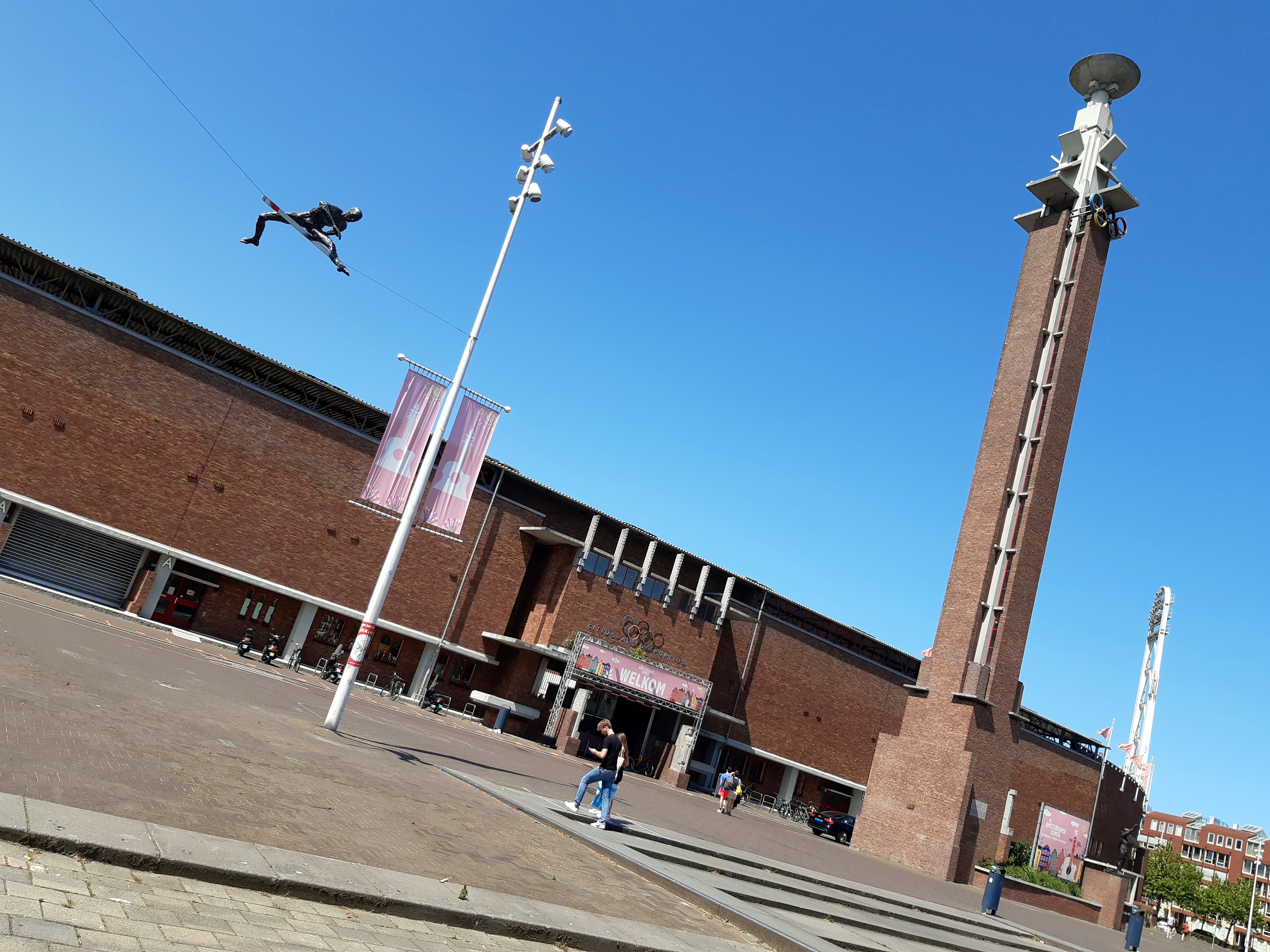 Yesterday (Sunday the 17th) the Amsterdam Marathon was run. It’s also got an 8km walk, and a half-marathon. All the races started and ended at the Olympic Stadium, which I’ve shown you from various angles since I moved here in July, pretty much. It’s a 10-minute walk from my home, and all the races ran right past my building…as you see 🙂 I took some of these on Friday evening when the sun came out at the end of my work-from-home day and I decided a walk was in order, only to find all these new temporary things in my neighborhood. On Saturday there was both a City Walk, some kind of organized group walk thing (sponsor of the signs you see below), and some great park art in ArtZuid (ArtSouth), here in the southern district of Amsterdam where I now reside. All lovely, and yes – more photos for the future!