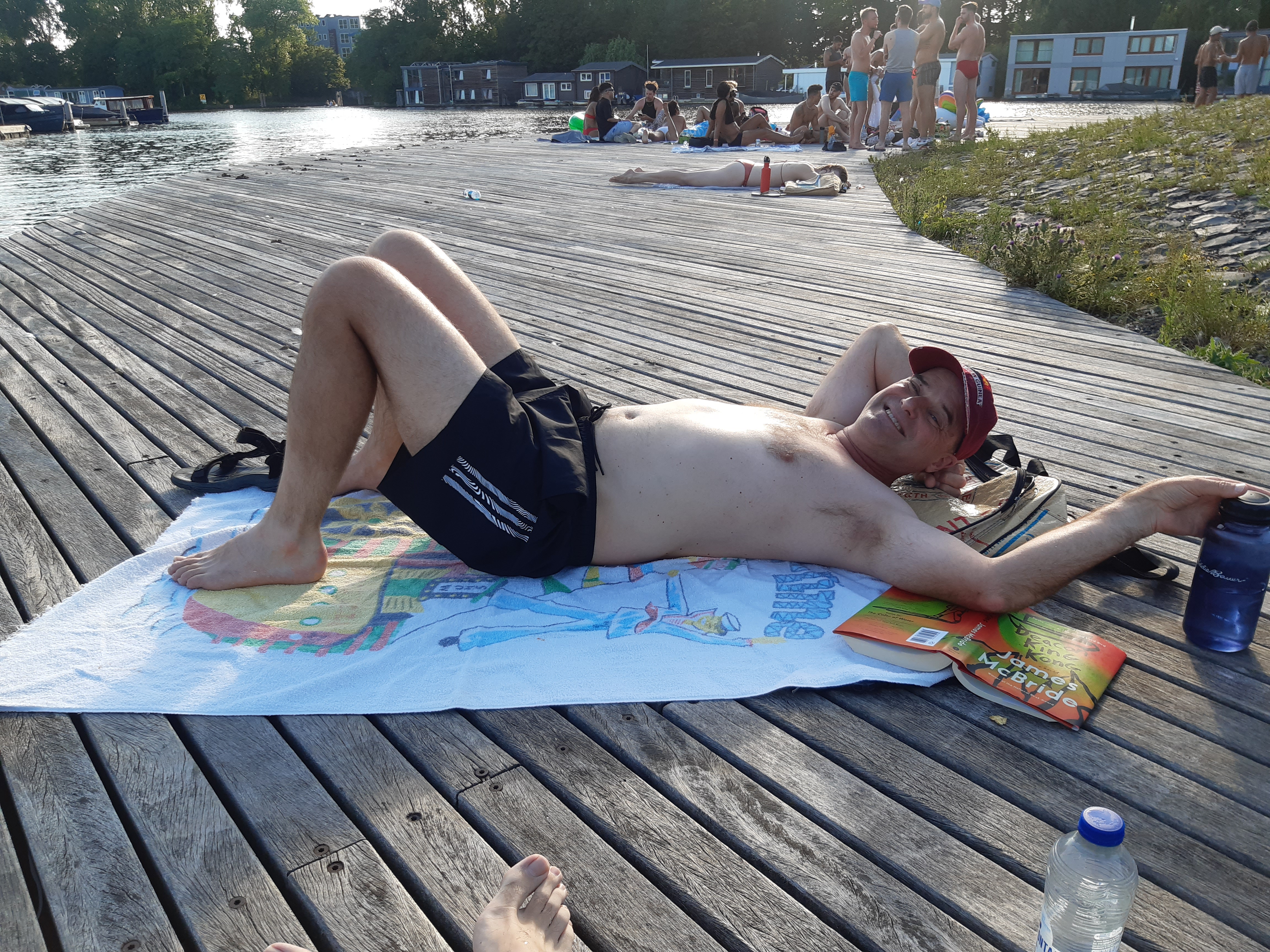 With warm weather, we’ve discovered that the canals of Amsterdam are wonderfully swimmable :-). At least one brother o’ mine will recognize both of these beach towels – ah, memories we bring with us from other times and places 🙂