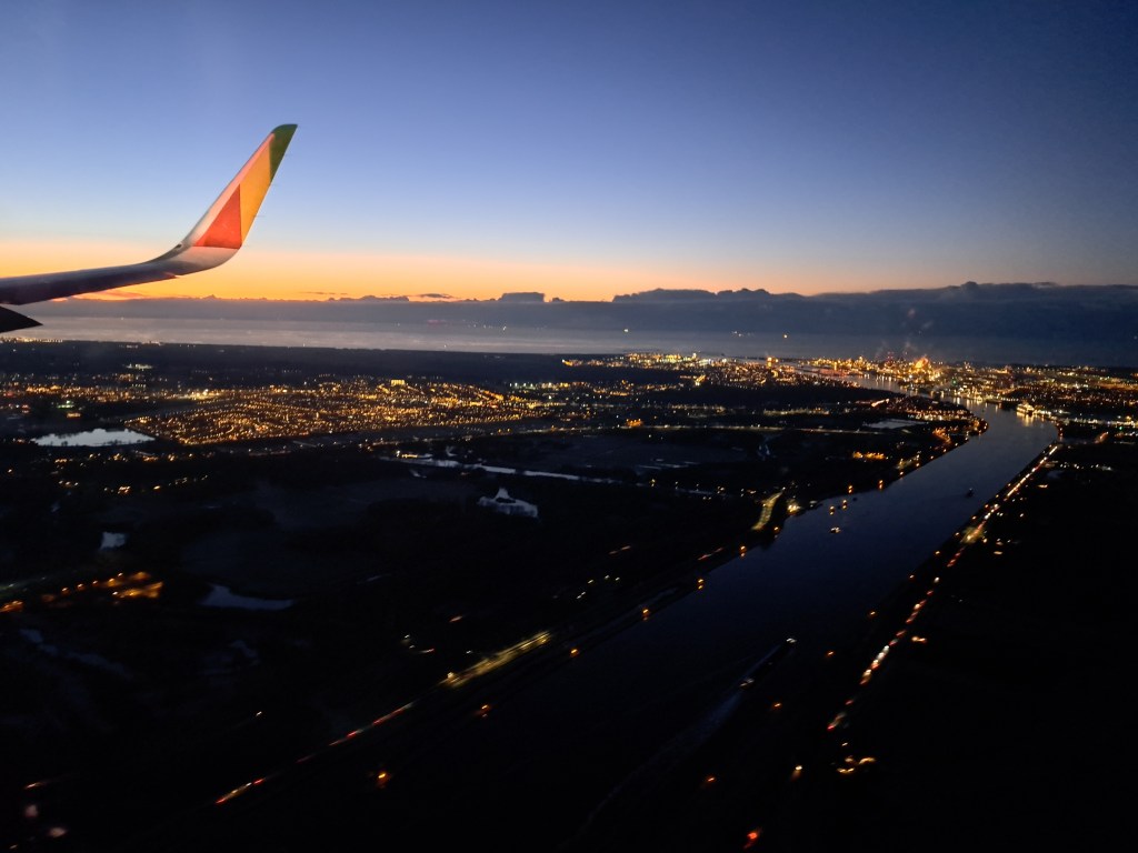 At least, if the sun had to be setting at 16:20, it was kind enough to be a clear (and cold!) day as the plane lined up for its landing at Schiphol last Wednesday :-).