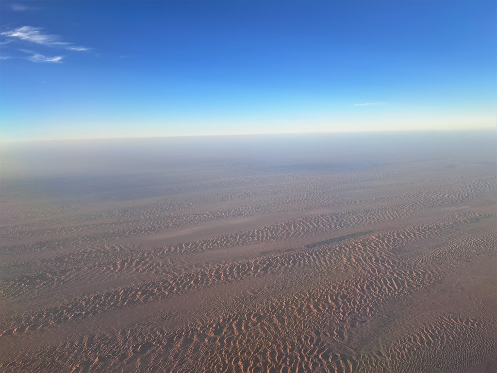 Today marks my 365th day in a row of posts here, and as the day dawns where I’m now living (also, as it happens, when this post will appear for you dear readers), I should be back in the air on yet another weary international flight for work. Or perhaps in another airport for another connection. (I’m scheduling this post before I head to the airport, if you’re curious…)In any case, it felt appropriate to open the “last day” with a new series, since any of you who’ve followed the blog over the years know I usually have a camera at hand and try to enjoy the perspective from the air when I’m on these long flights, so it’s always likely that there’ll be other opportunities for an entry in this new series. All the photos in this post were taken in the span of ten minutes as our flight approached Abu Dhabi’s airport in the wee hours of a morning last November. Interesting, what serious irrigation (and wealth to create that irrigation) can make of a desert, isn’t it?