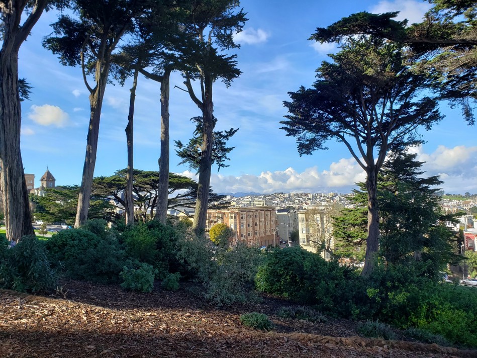 A few comments about the photos: I was happy to see that the playground at Mission Dolores Park, at the very top, was open for kids to play in – I’m not sure whether or not it was closed during the heavier restrictions, but it’s nice to see kids playing and to hear their shouts of delight. Here in Santa Rosa, most playgrounds I’ve seen have been officially closed, which makes me quite sad. SFPL is doing what our SoCo library is doing: reserve your items online, and do a touchless pickup and / or return. Returned materials are then quarantined for a few days. You’ll also see a touchless coffee pickup table for the mobile coffee truck in Alamo Square Park.