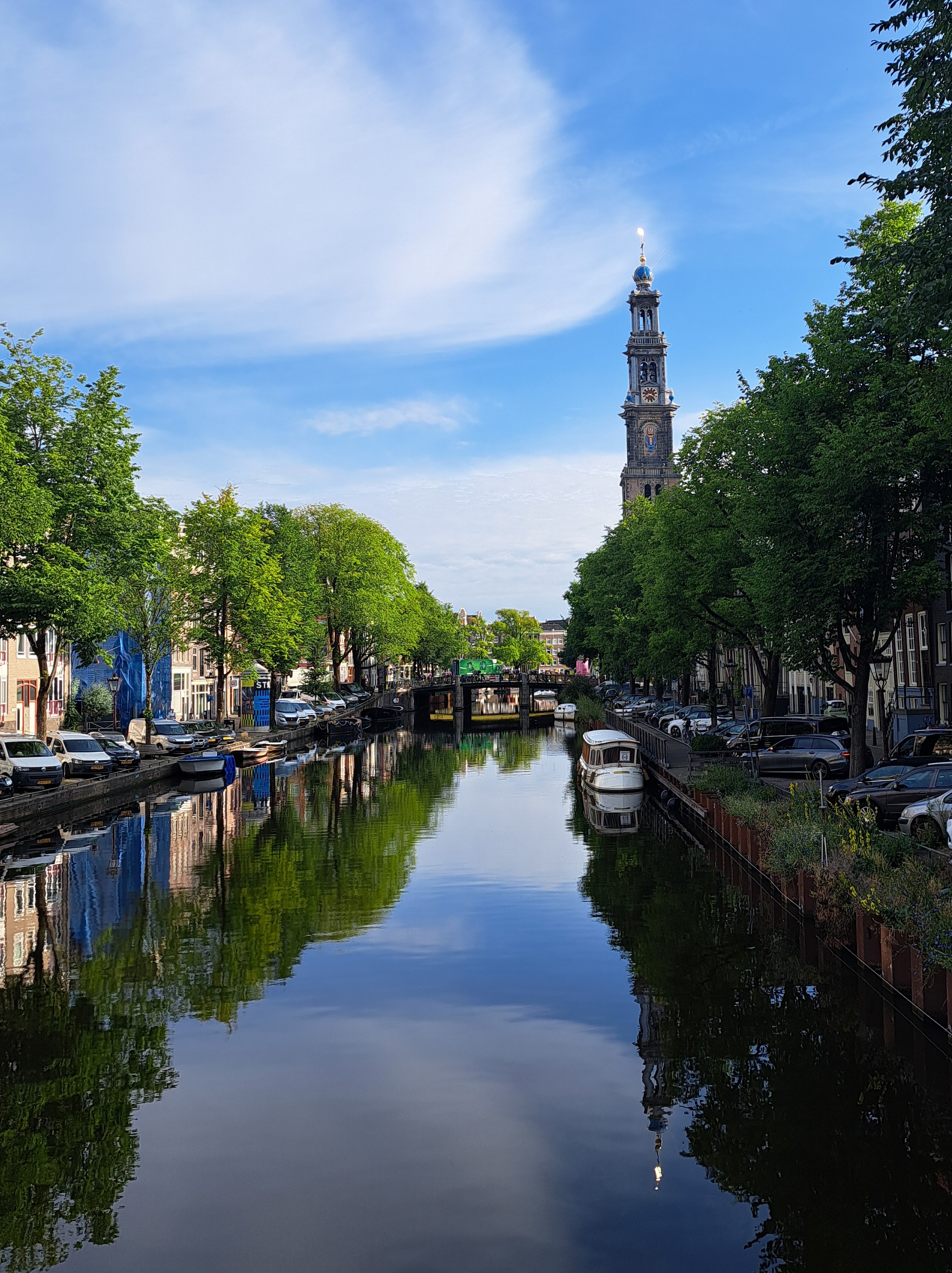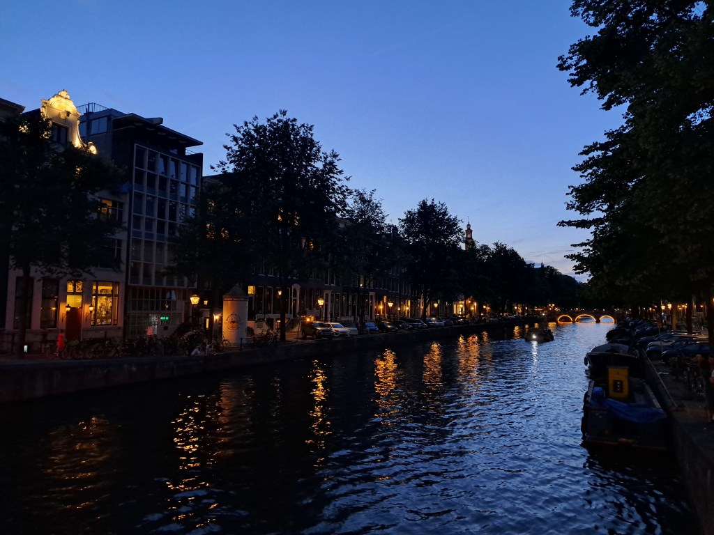 Now and then the morning bike commute to work is so lovely that I stop and take a photo or two, such as these shots from June and July. The right-side photo shows Westerkerk, which is referenced in Anne Frank’s diaries and which sits next to both the contemporary Anne Frank Huis museum, and the fabulously-named Homomonument. (Commemorating queer folks targeted and killed during WWII.)