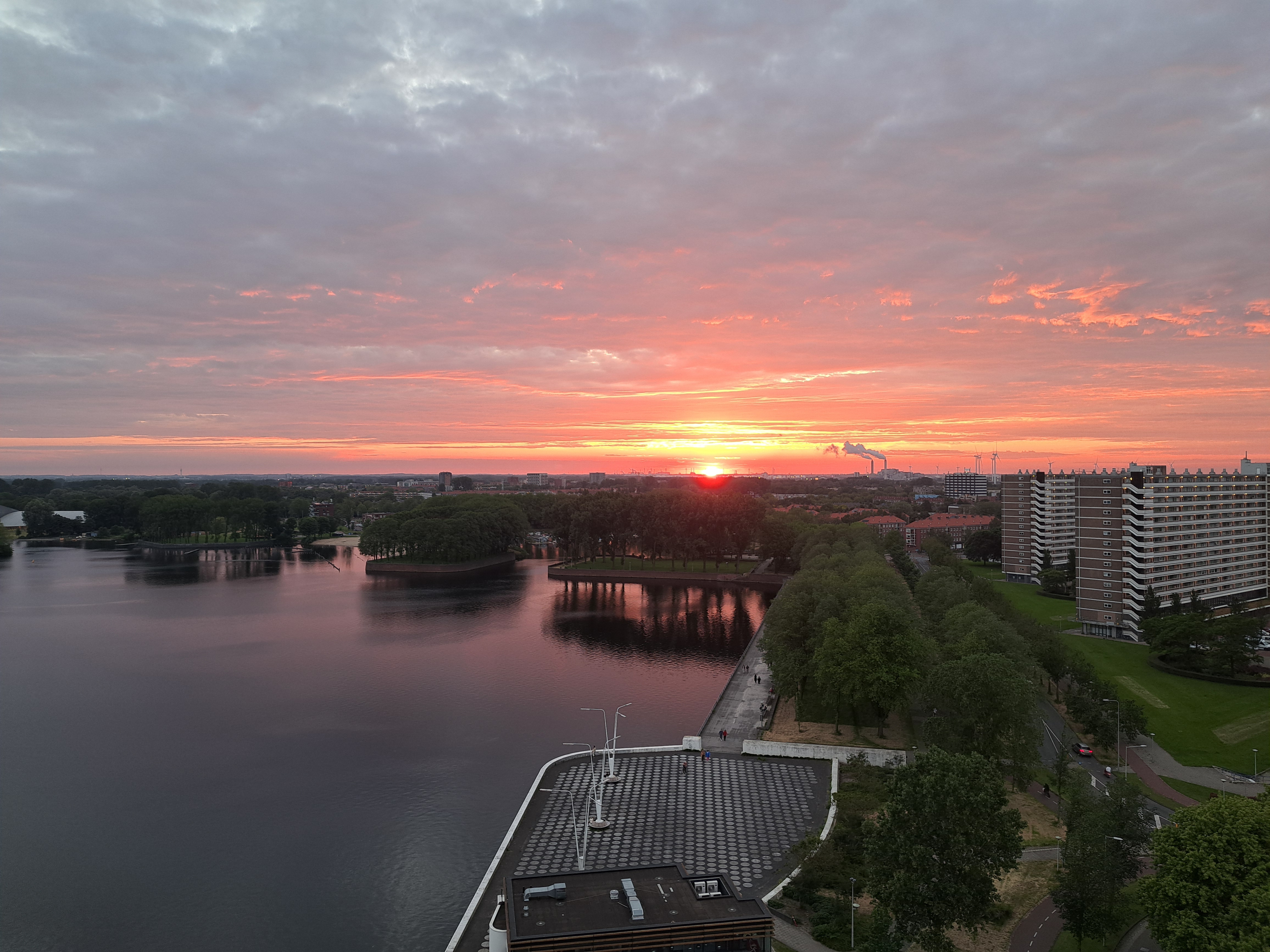 Same island, different angles and times of year: above, seen from my apartment around the summer solstice at 22:04; below, seen from the far side at ground level, 10 October at 18:34.