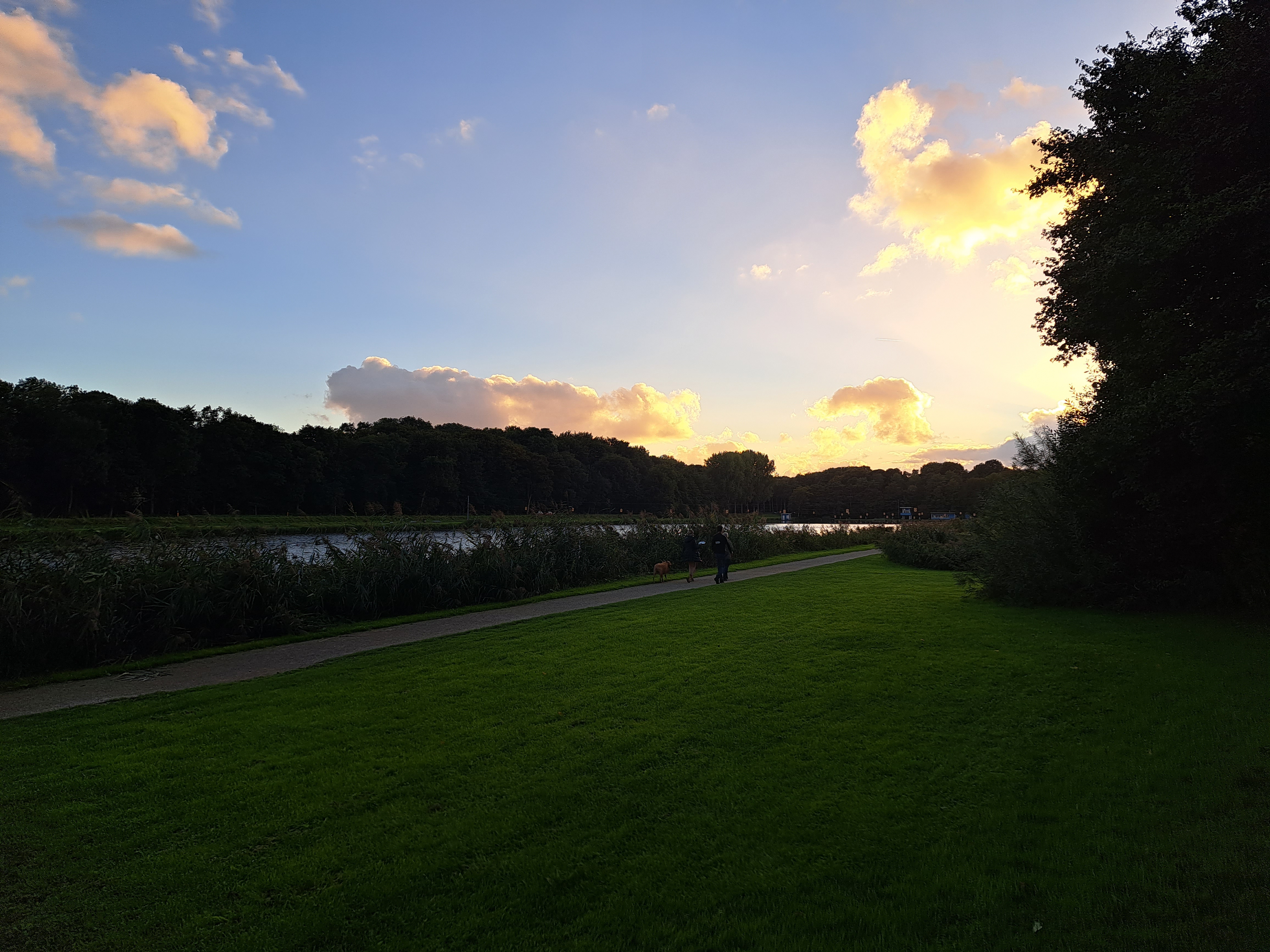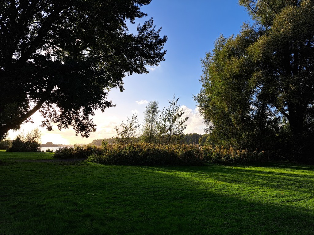 Same walk as the last entry: you get a sense why this is one of my favorite walk routes when the sun is shining, I trust? On the last warm swimmy day of August or early September, I followed a tennis outing (my club courts are a short bike ride behind and right, from the perspective of the photo above) with a swim on the far shore of this lake…but though we did see a few natives swimming on this outing, my bones would find the wind and air temperatures much too cold to brave those waters any more. We’re looking north across Nieuwe Meer, from the edge of Amsterdamse Bos, for anyone who wants to map-check any of it.