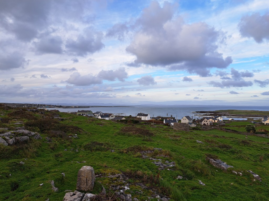 Cill Rónáin (Killronan) is the main village on the Aran Island of Inishmore, which is the most populous of the islands. Above, the village as seen from across the bay during a walk after the driver and tour guide deposited us back in the village, after showing us the key sites of the western 2/3 of the island in a roughly 3-hour walking and driving tour of various sites I’ve shown you in prior posts. Below, a view as our ferry from Rossaveel approached the dock earlier that morning. In the gallery further down are all the other shots from various parts of the island that might give you a sense of “village” life on this lovely but remote and sparsely-populated island.