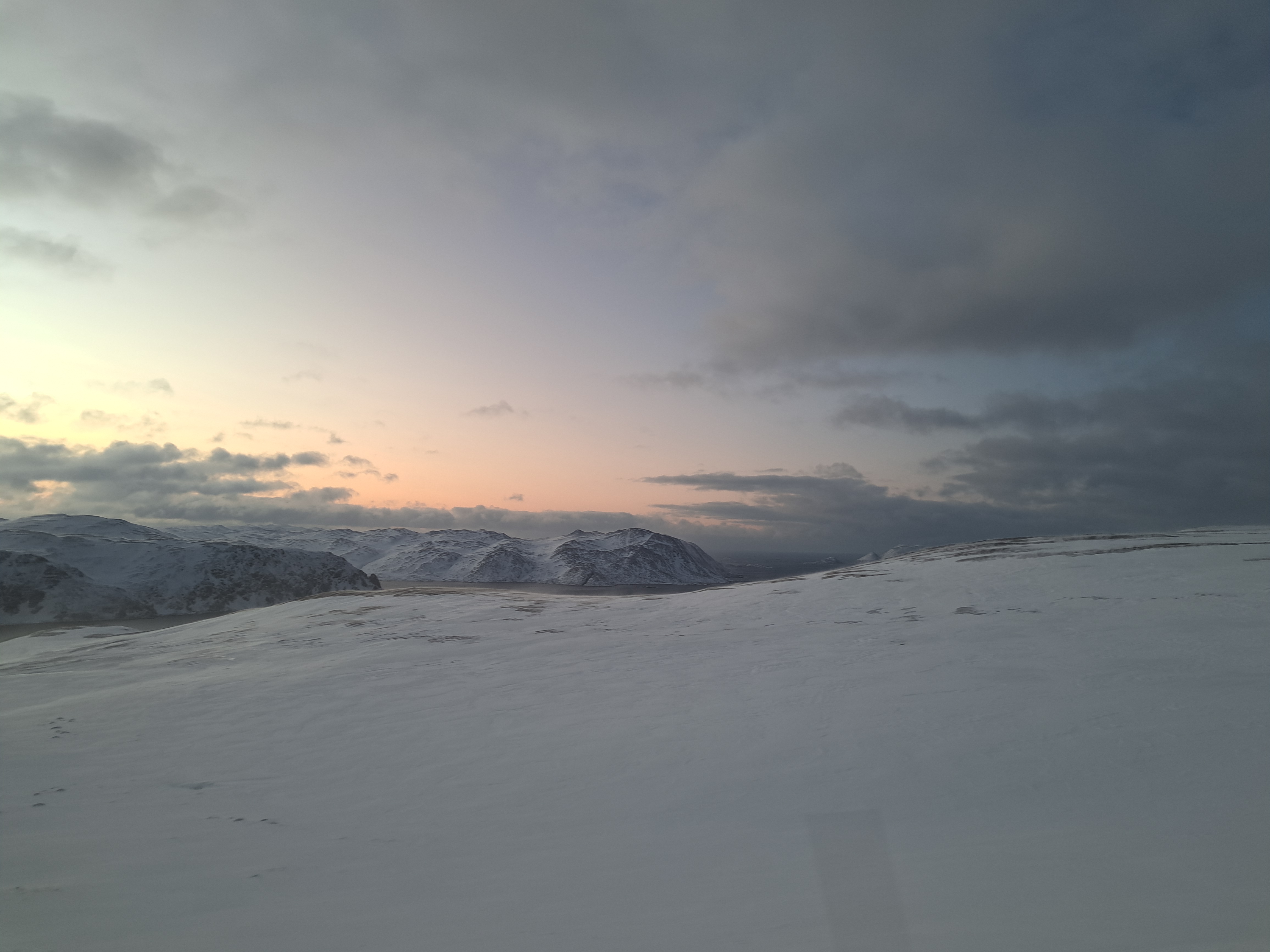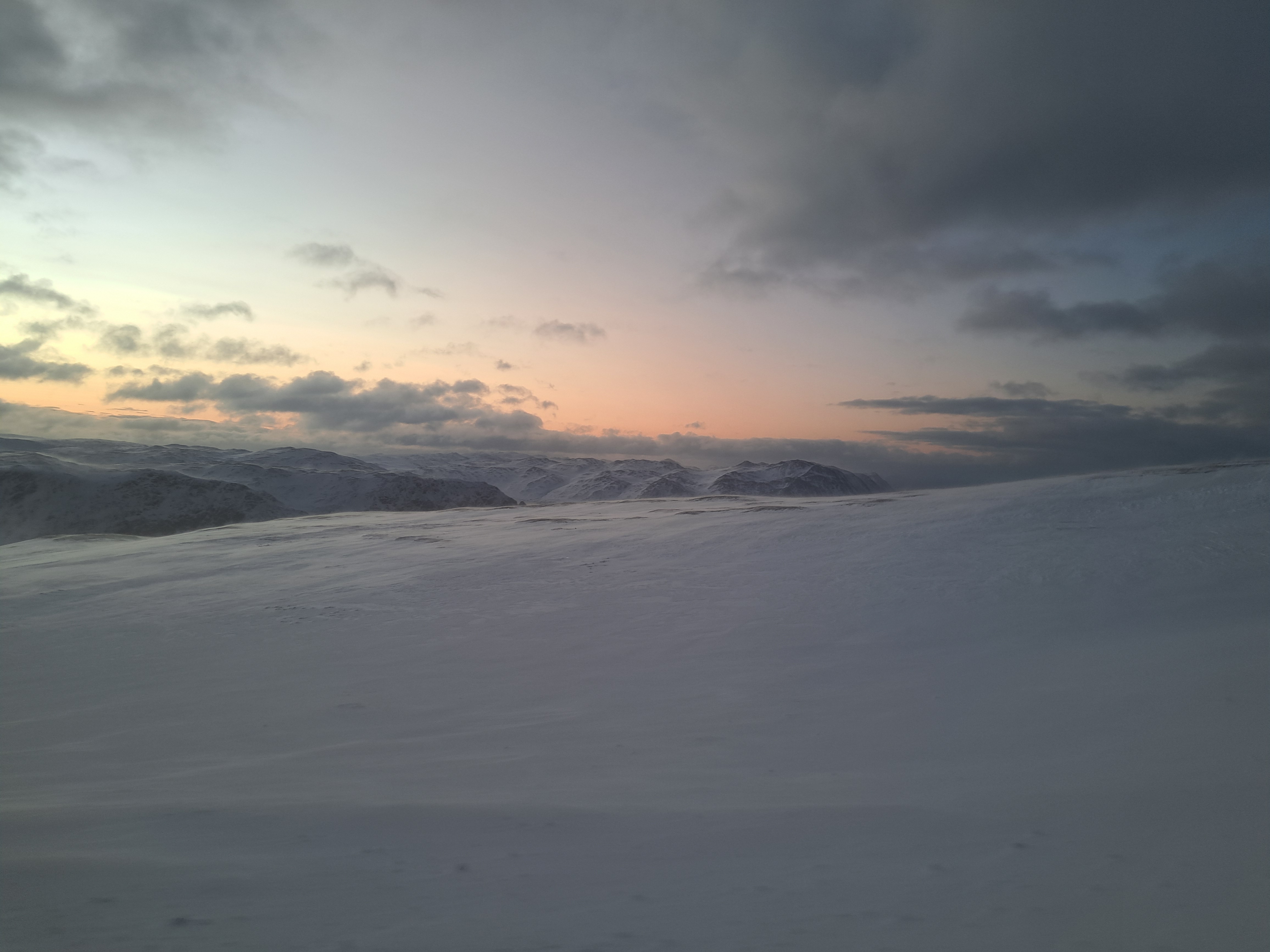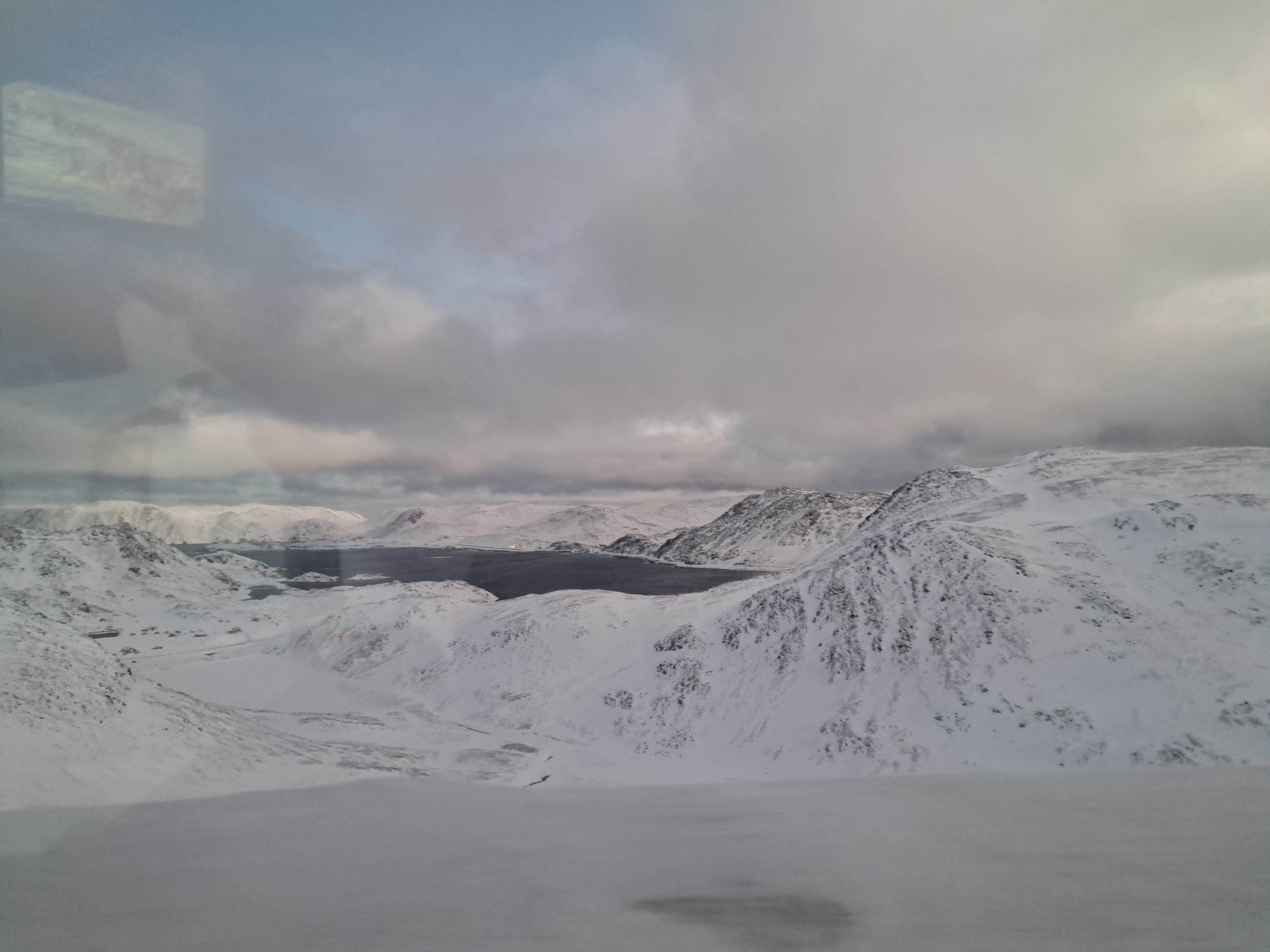 Above, shortly after 8am on the 23rd of January, roughly two minutes before our boat crossed into the arctic circle. Below other mountainous coastal shots from the following hours before we docked at Bodø…including Gary with the ship’s spotlight illuminating the arctic circle monument behind him.